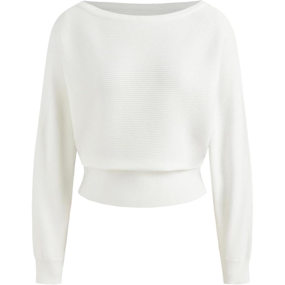 CIDER Asymmetrical Neck Solid Crop Long Sleeve Top(White)