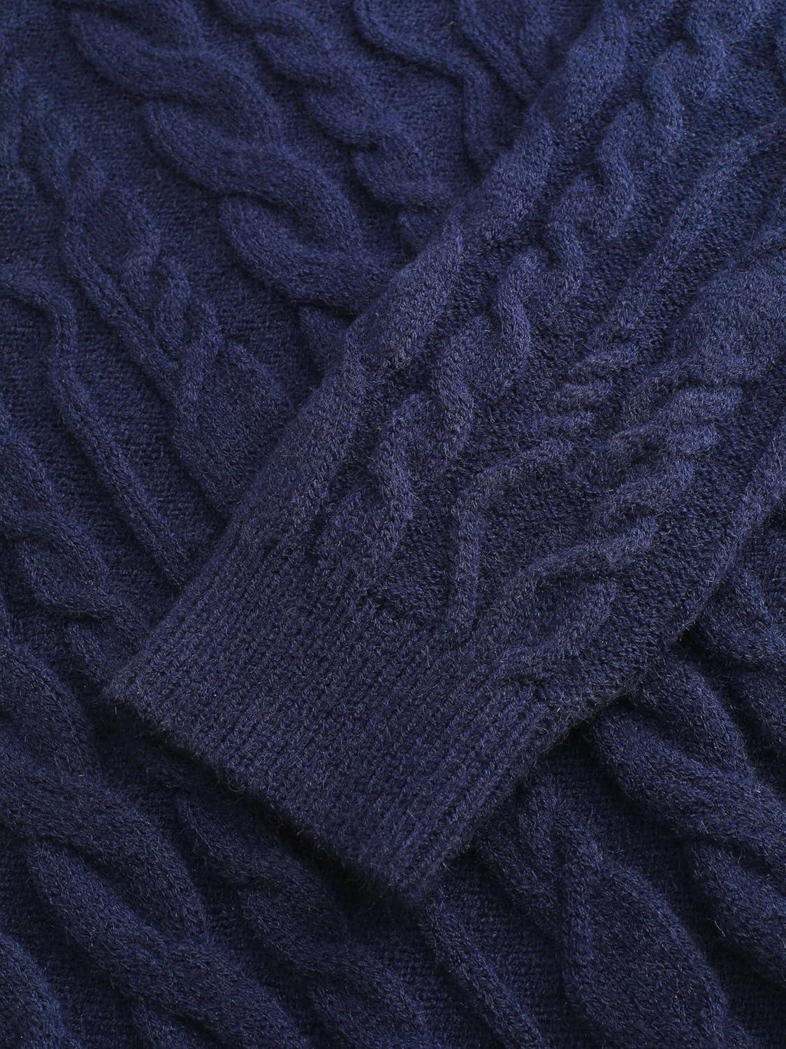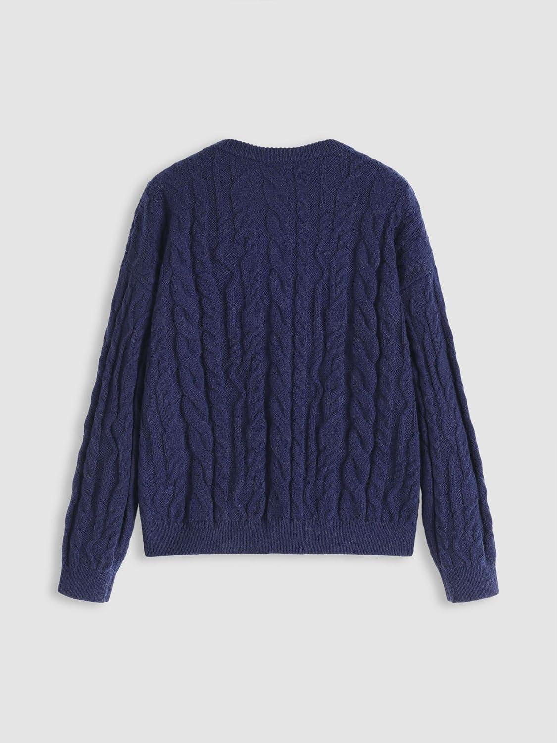 CIDER Cable Knit Round Neckline Long Sleeve Sweater(Blue)