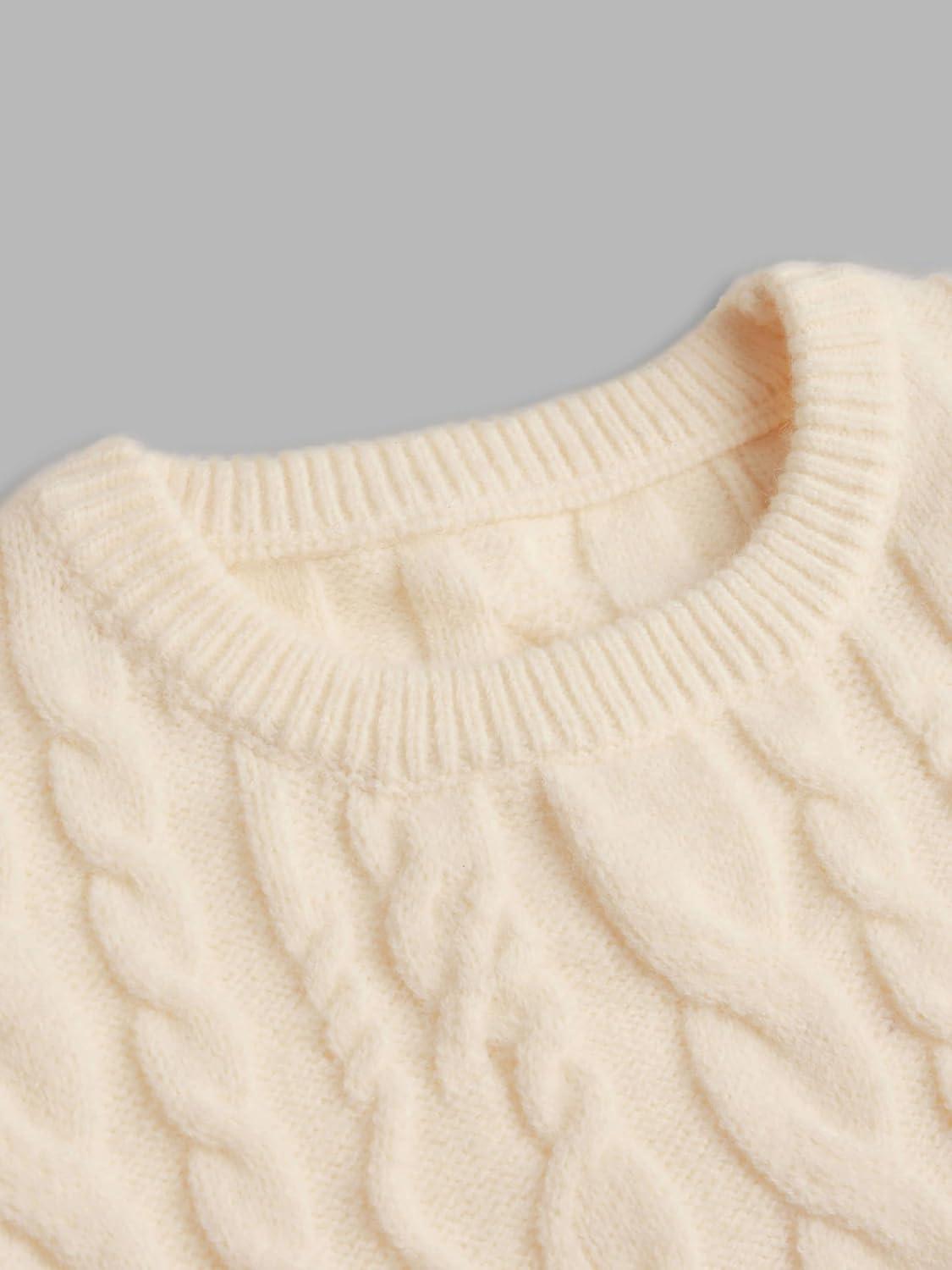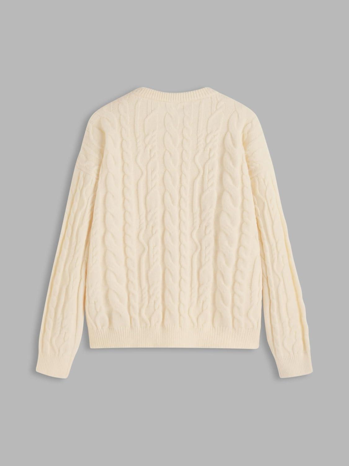 CIDER Cable Knit Round Neckline Long Sleeve Sweater(Cream)