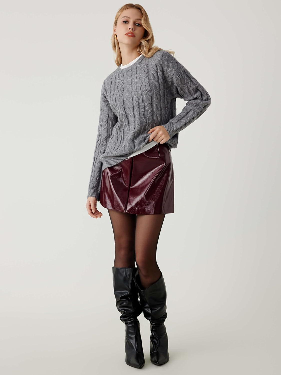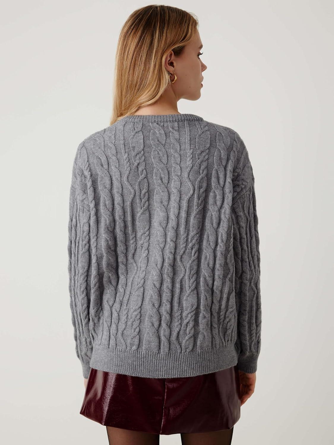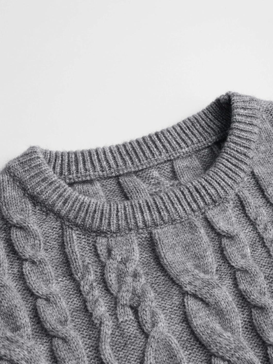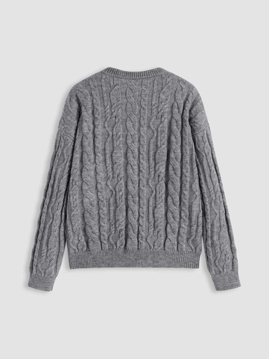 CIDER Cable Knit Round Neckline Long Sleeve Sweater(Grey)