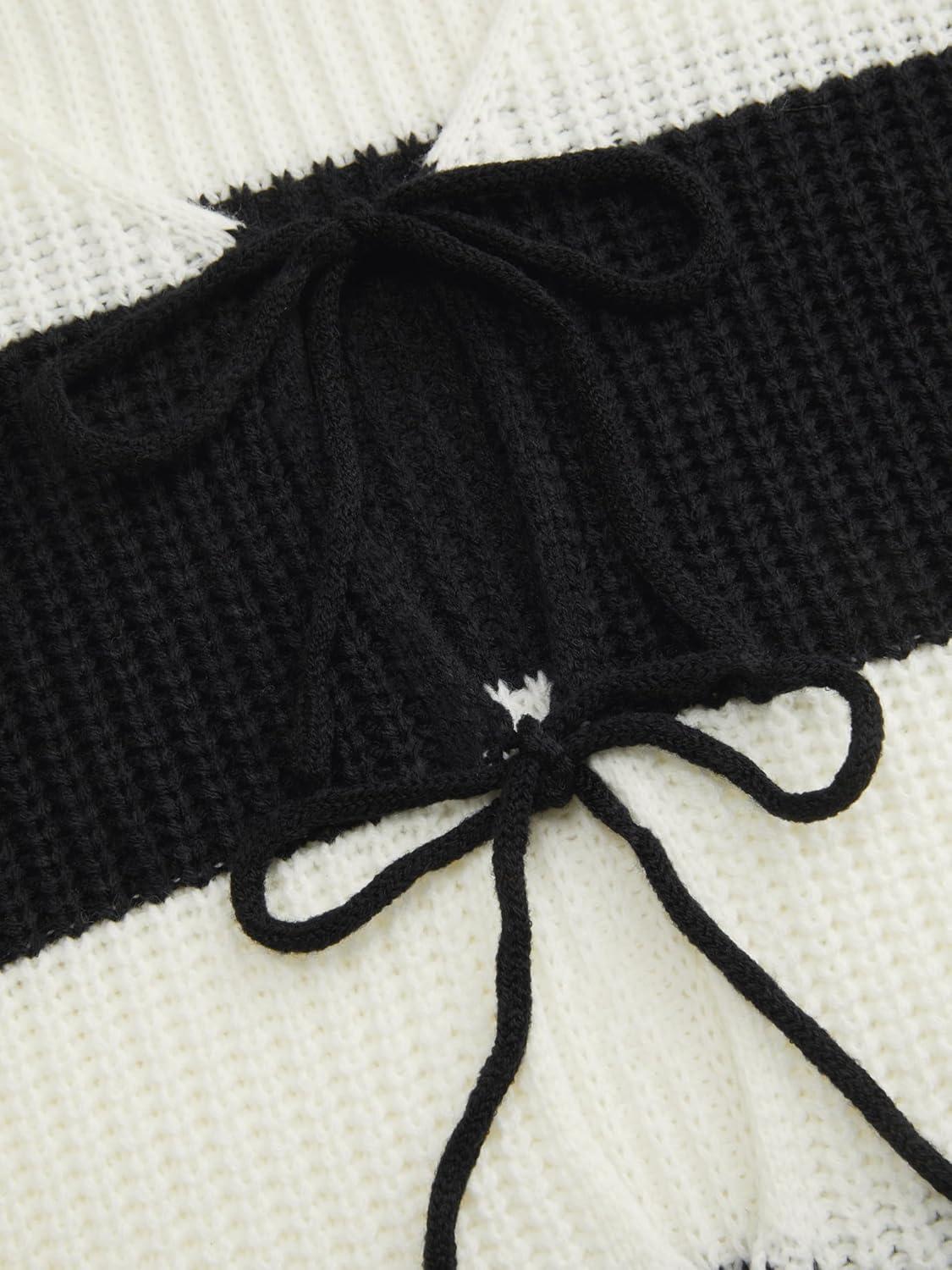 CIDER Cardigan Sweater for Women Tie Front Striped Long Sleeve V Neck Cute Y2k Fall Trendy Outfits(Carbon)