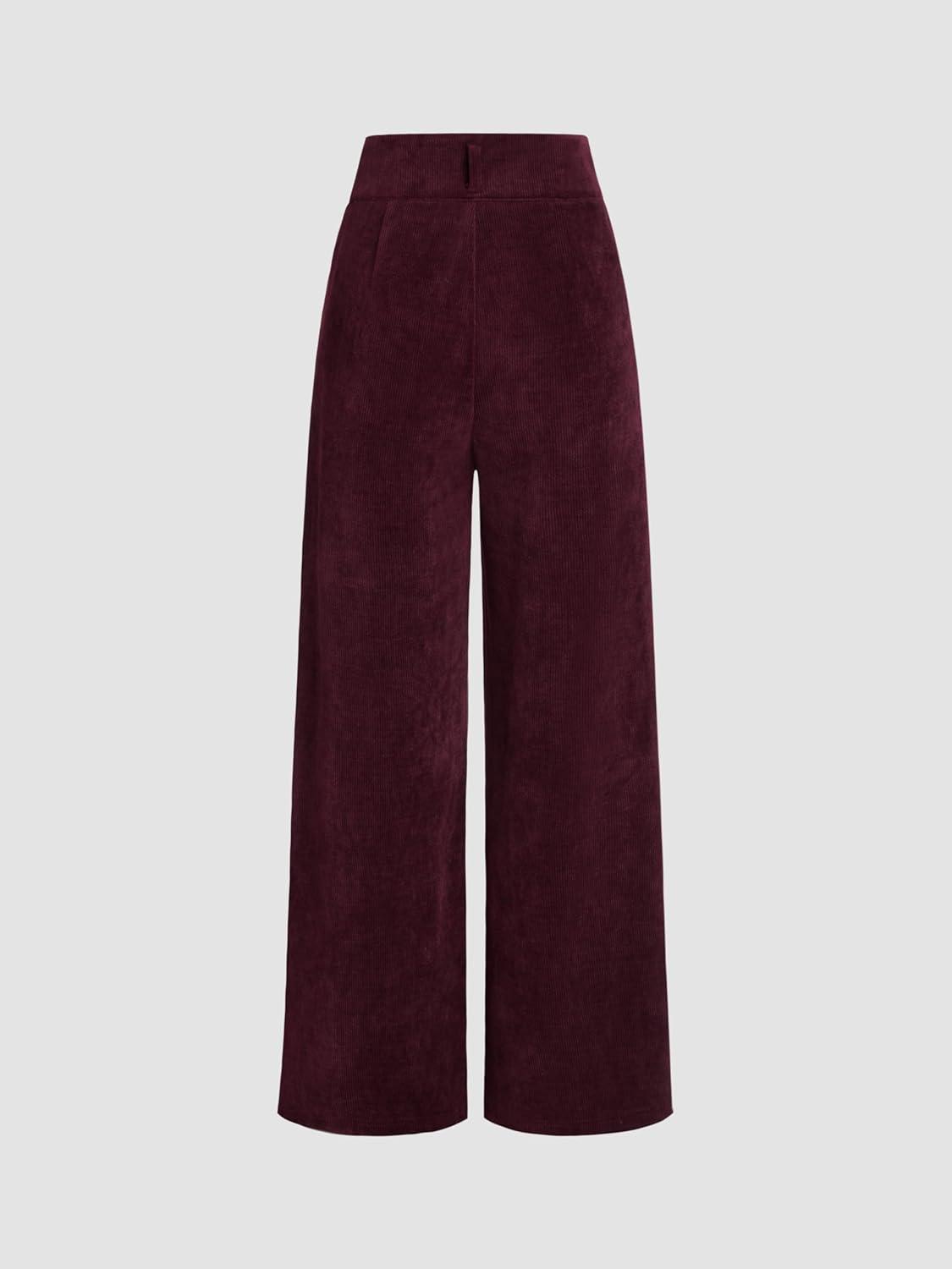 CIDER Corduroy High Waist Solid Pleated Wide Leg Trousers(Wine)