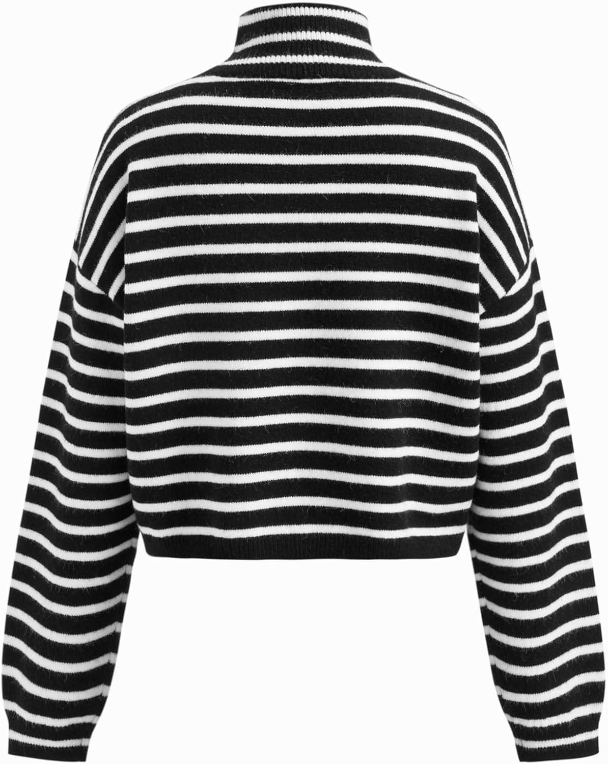 CIDER Cropped Sweaters for Women Pear Cute Turtleneck Sweater Long Sleeve Y2K Lantern Sleeve Pullover Fall Outfits(Black)