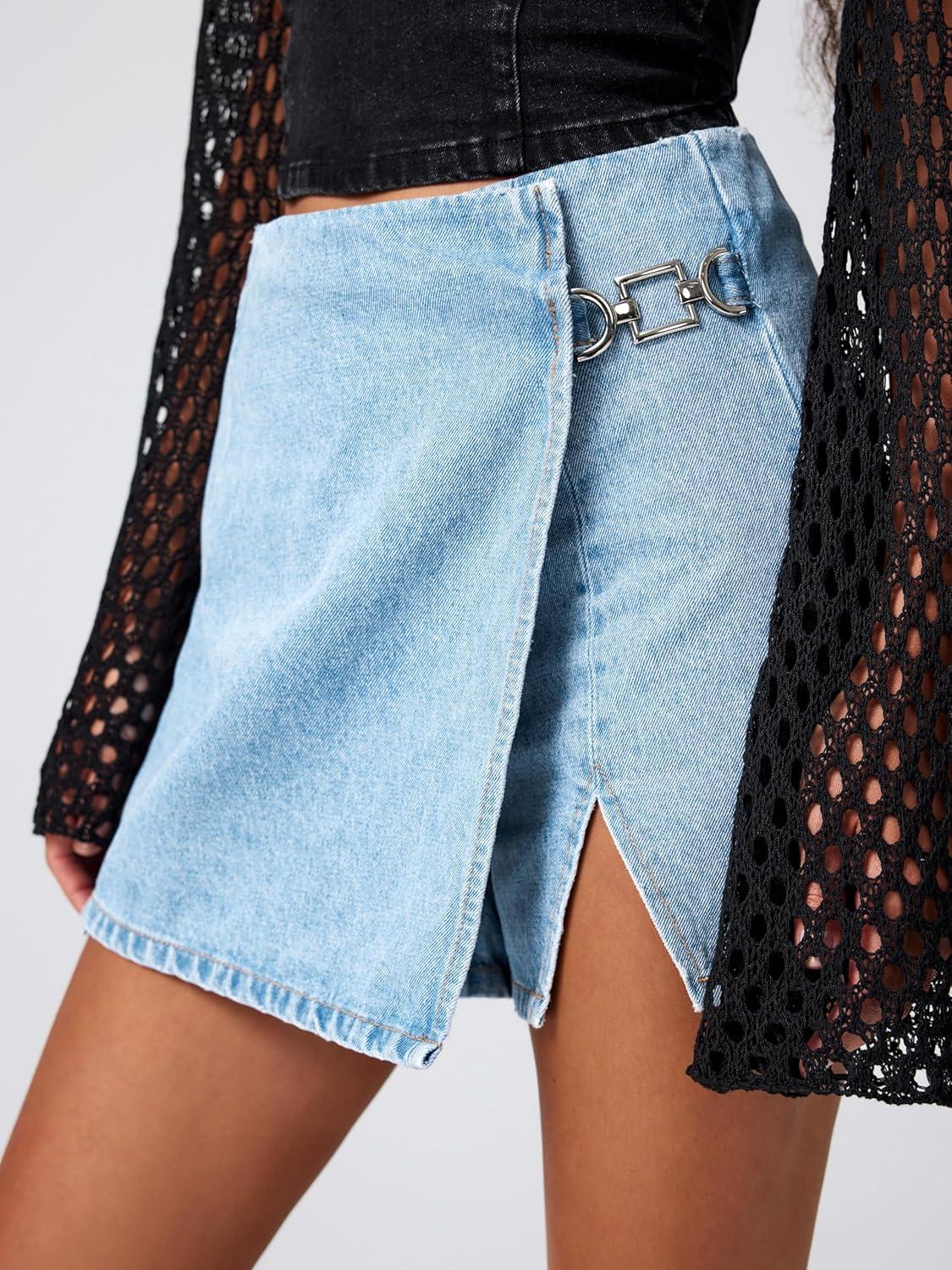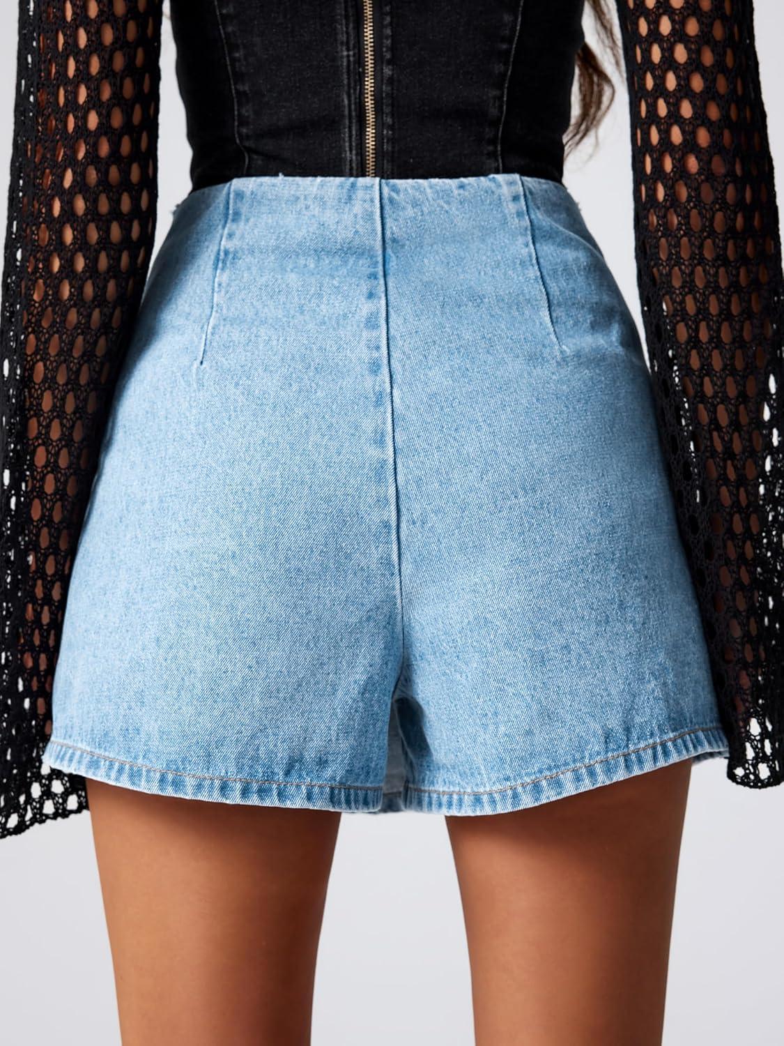 CIDER Denim Mid Waist Split Shorts(Denim)