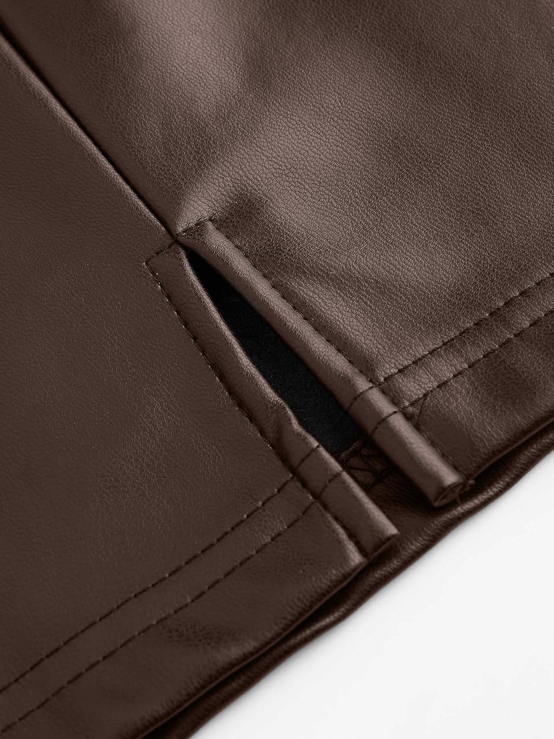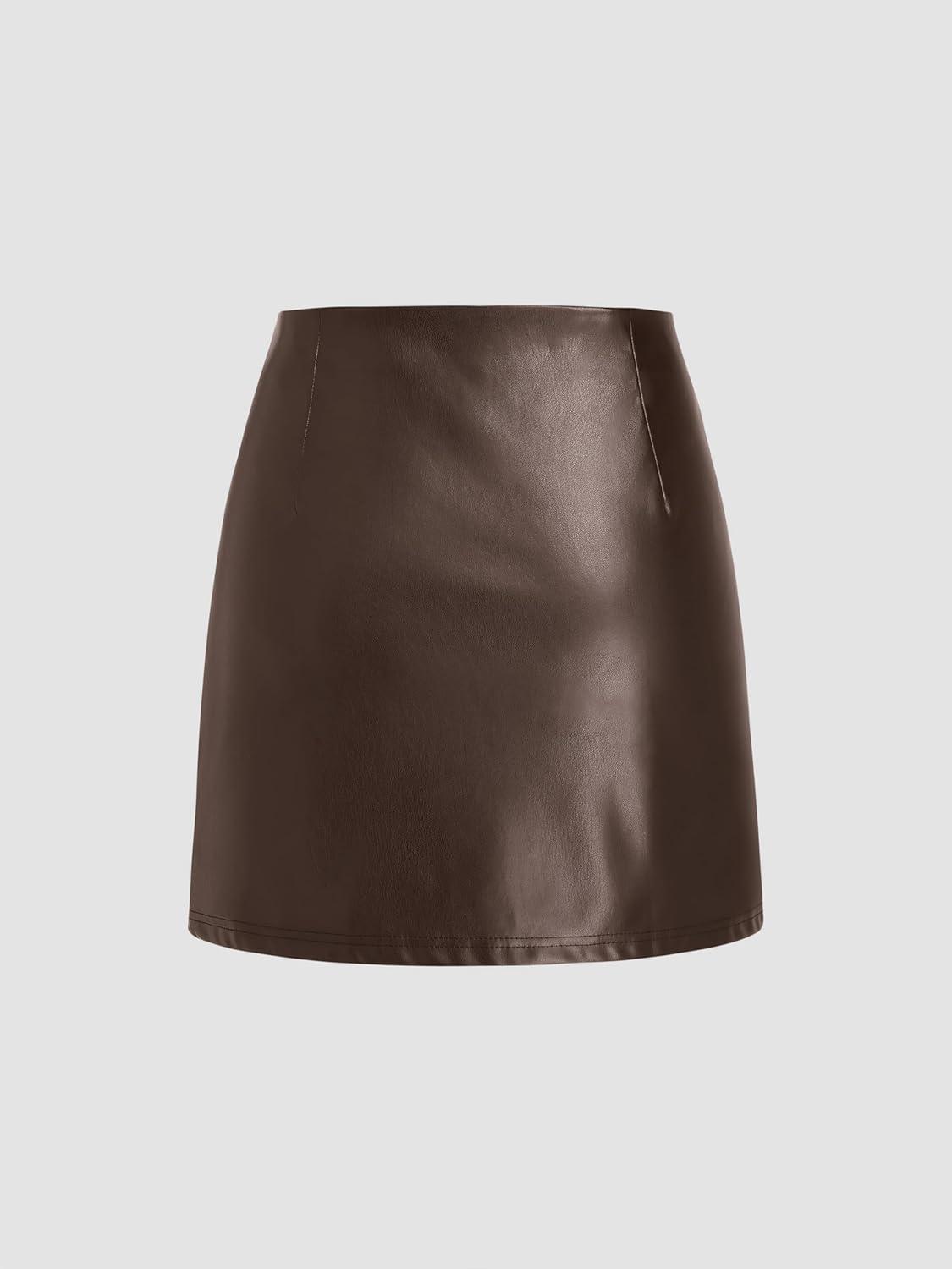 CIDER Faux Leather Solid Split Mini Skirt(Brown)