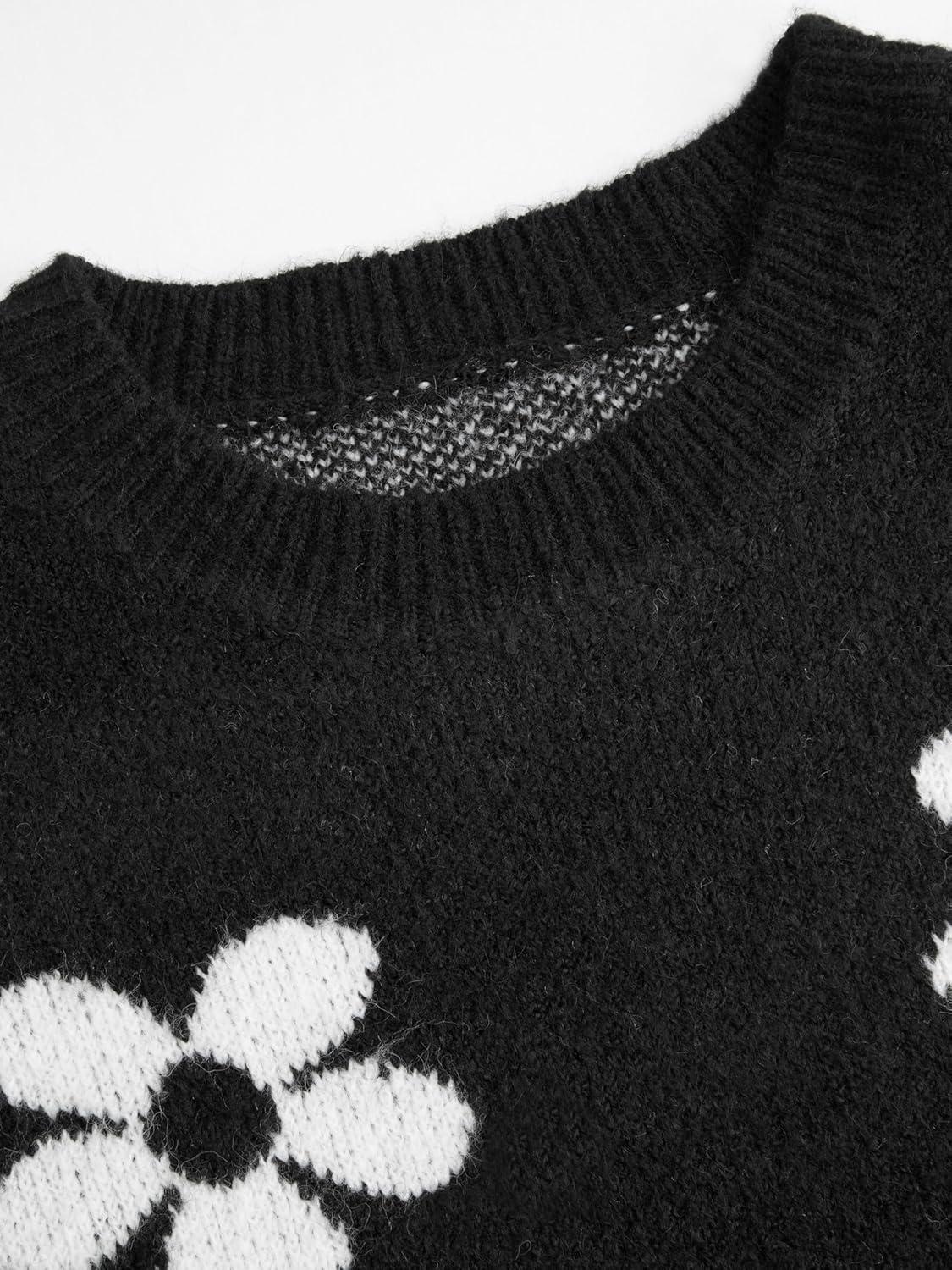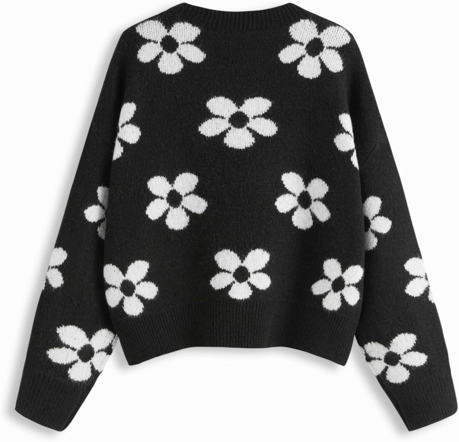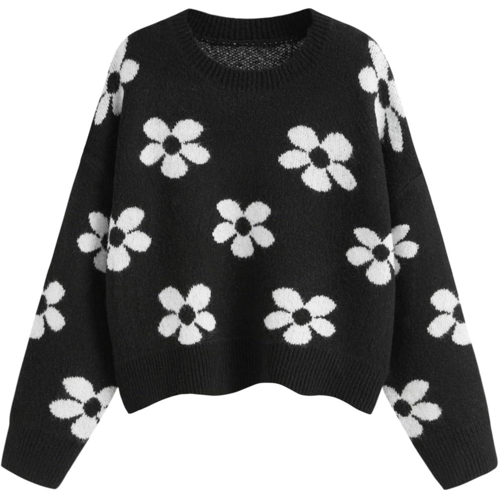 CIDER Floral Cozy Sweaters for Women Trendy Long Sleeve Cute Fall Outfits Casual Knit Pullover Sweater Fashion Clothes(Black)