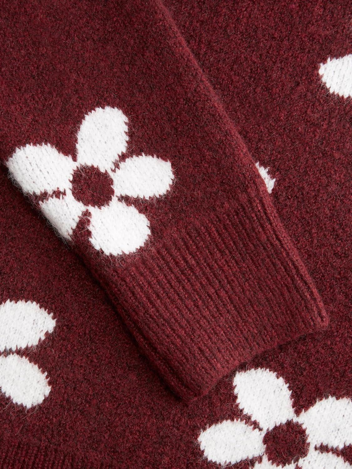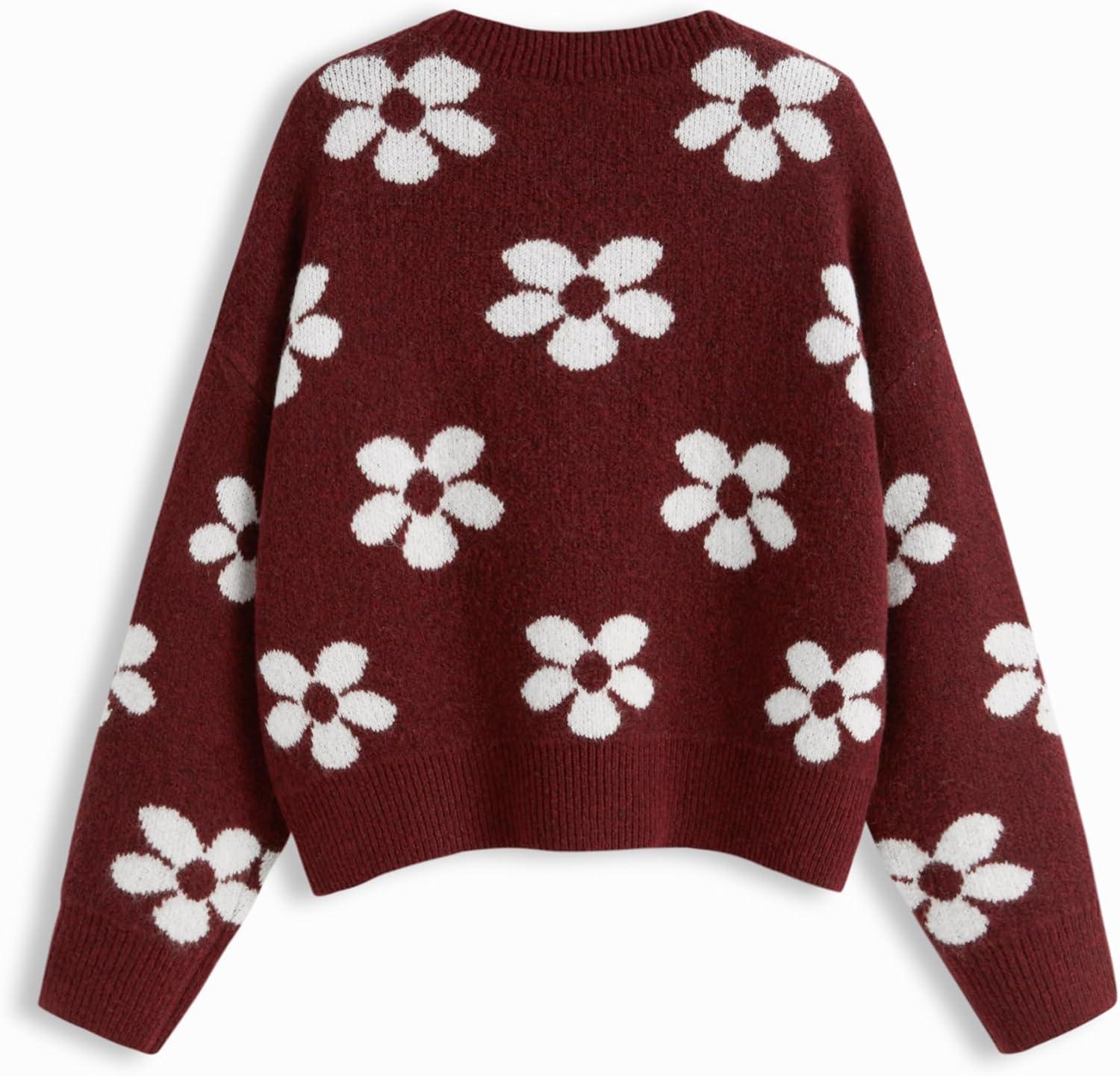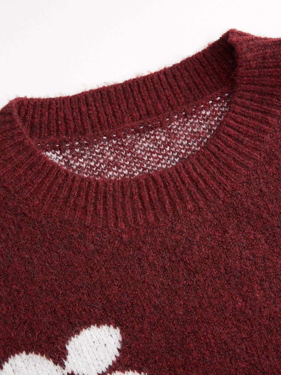 CIDER Floral Cozy Sweaters for Women Trendy Long Sleeve Cute Fall Outfits Casual Knit Pullover Sweater Fashion Clothes(Wine)