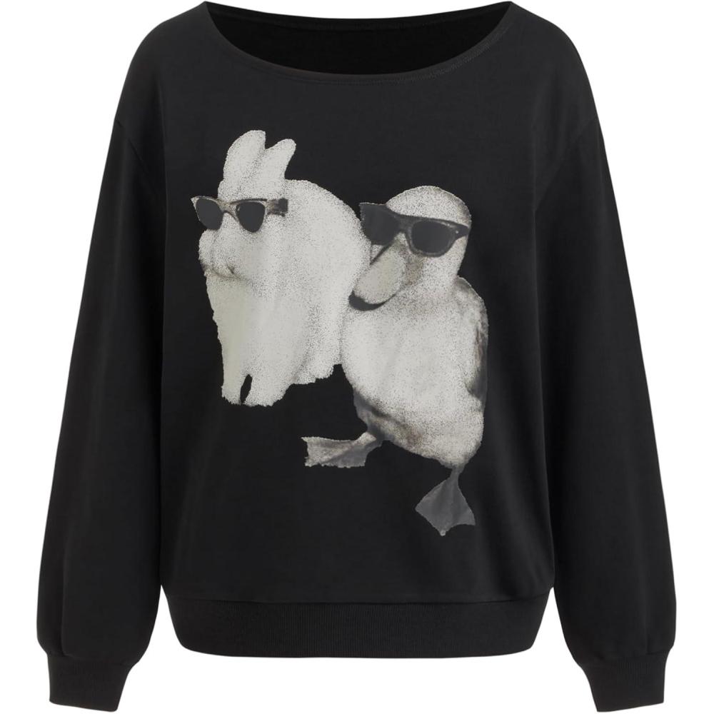 CIDER Going Out Sweatshirt for Women Dachshund Graphic Asymmetrical Neck Long Sleeve Terry Pullover Dog Top(Black)