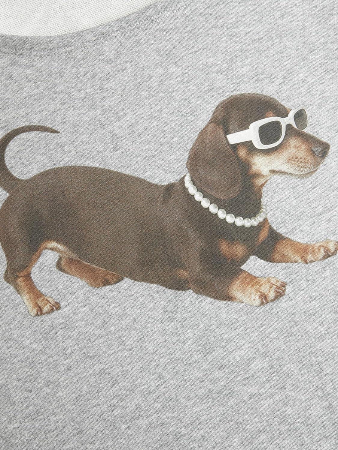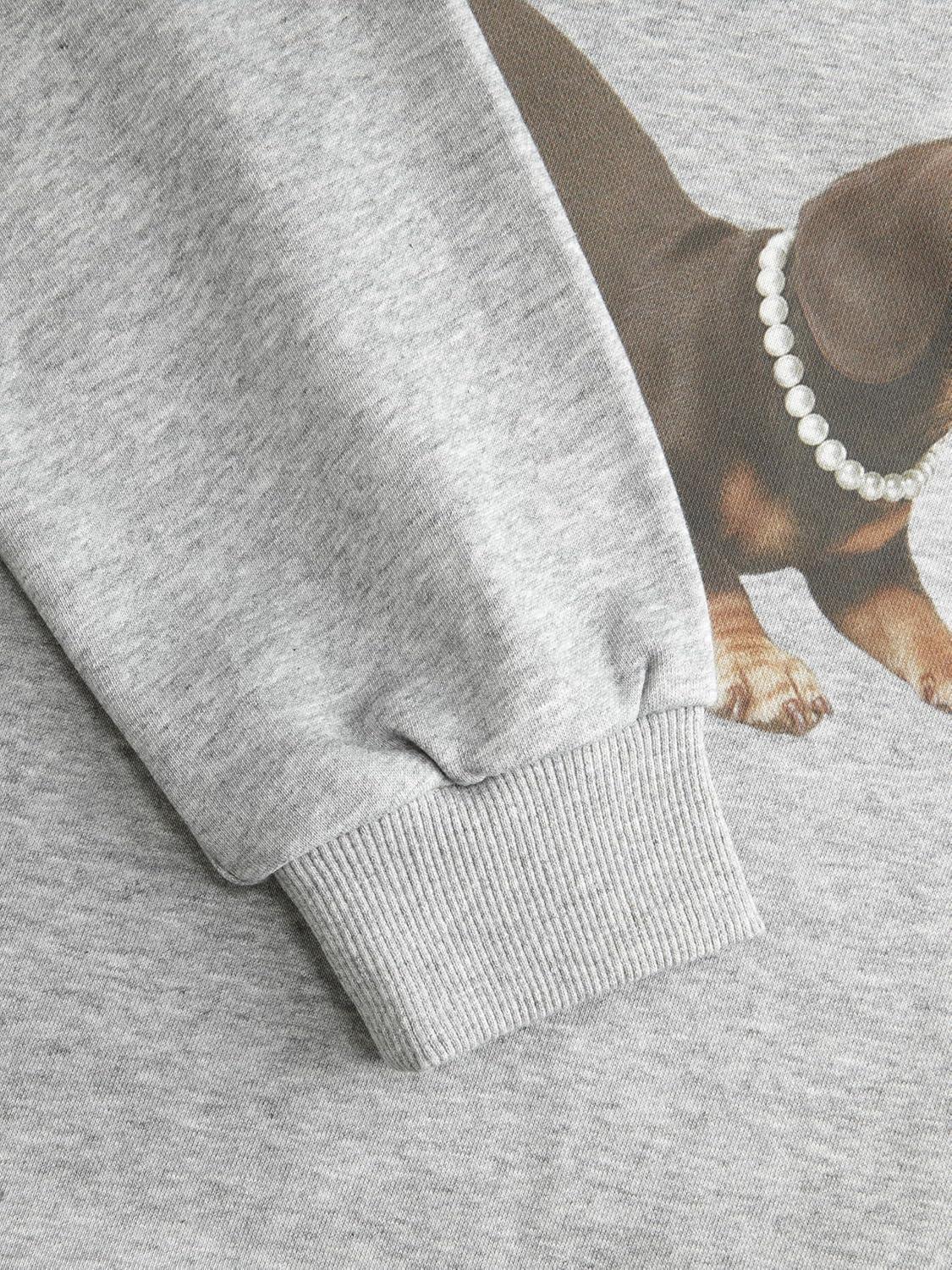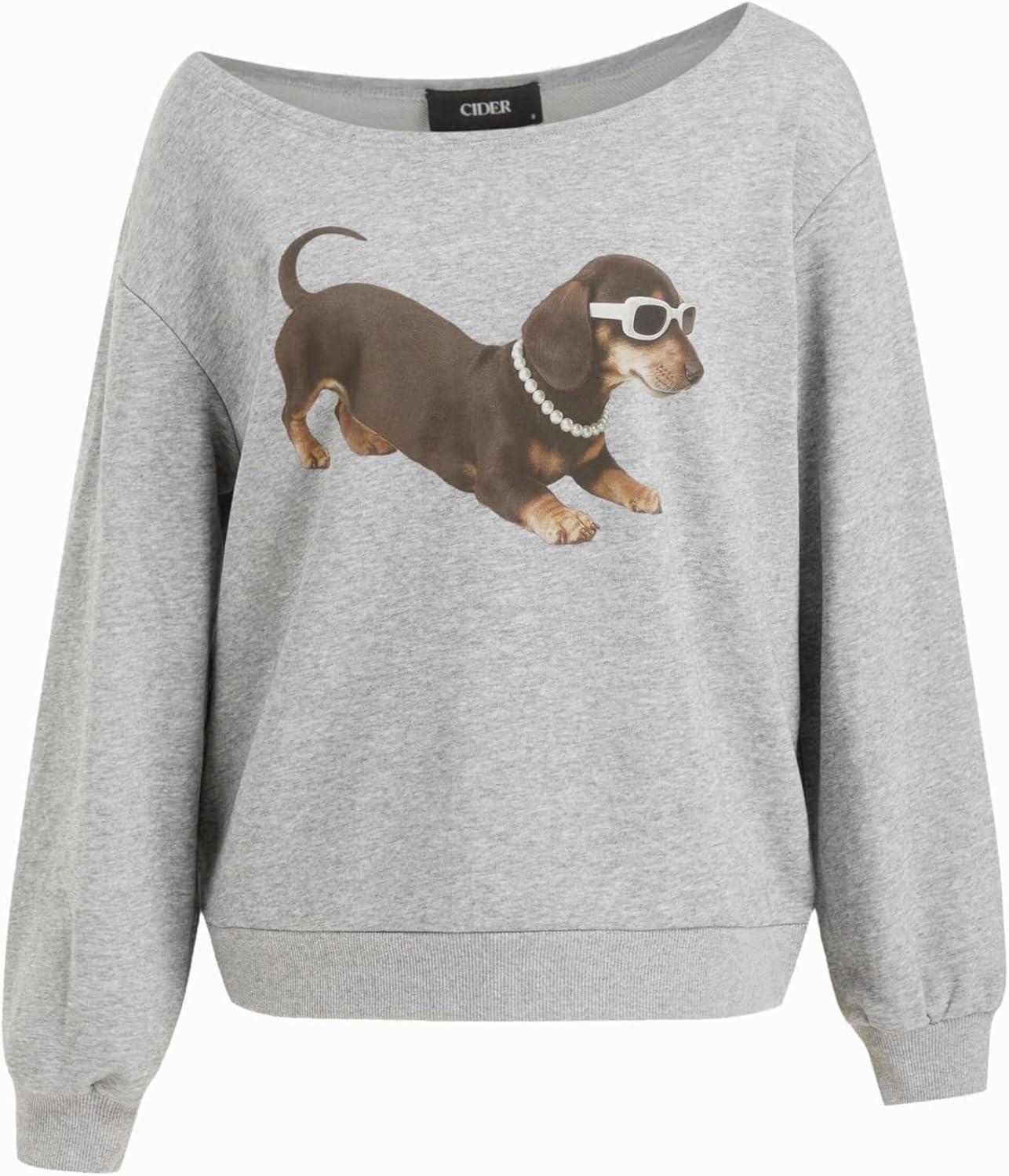 CIDER Going Out Sweatshirt for Women Dachshund Graphic Asymmetrical Neck Long Sleeve Terry Pullover Dog Top(Grey)