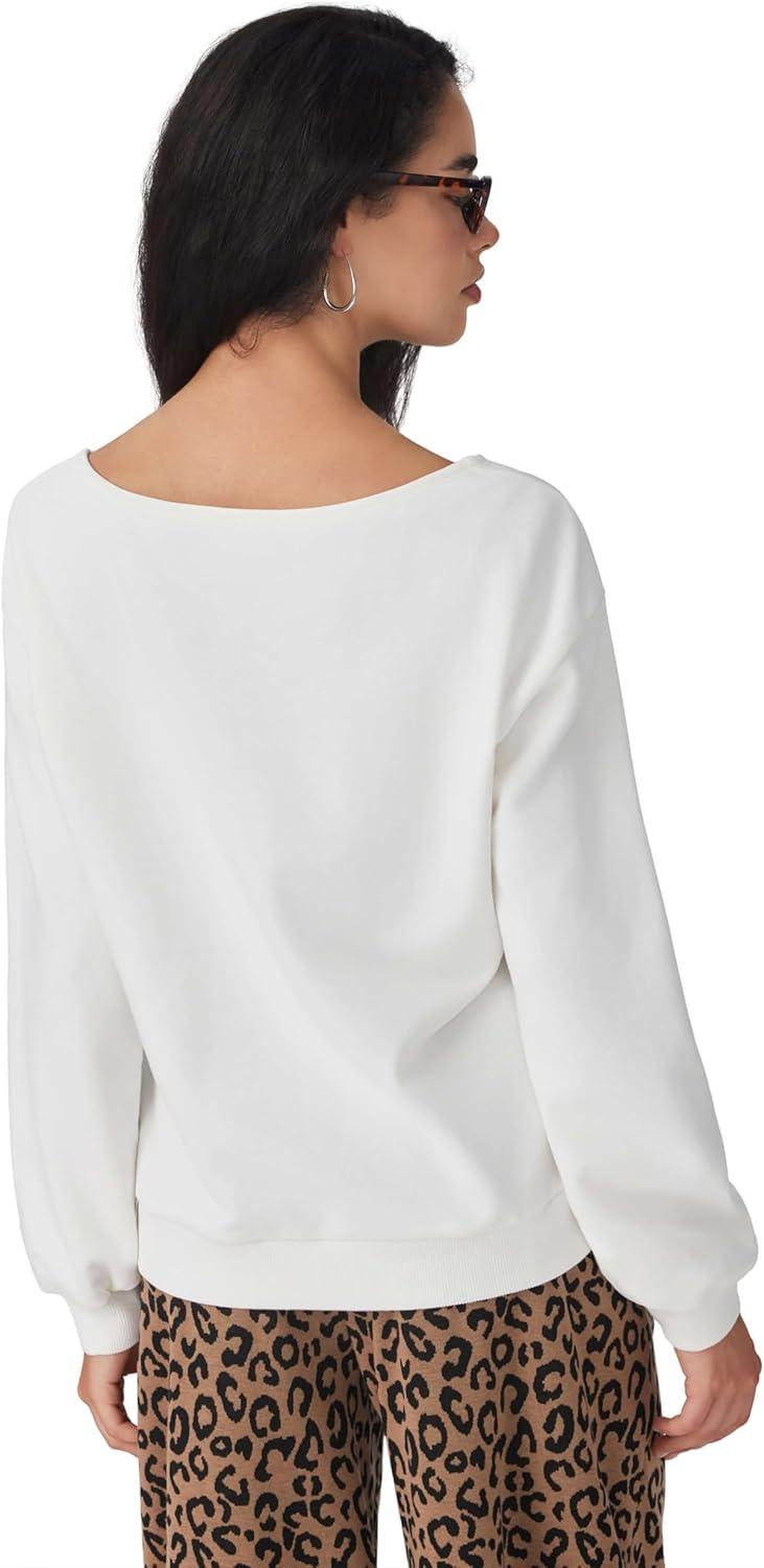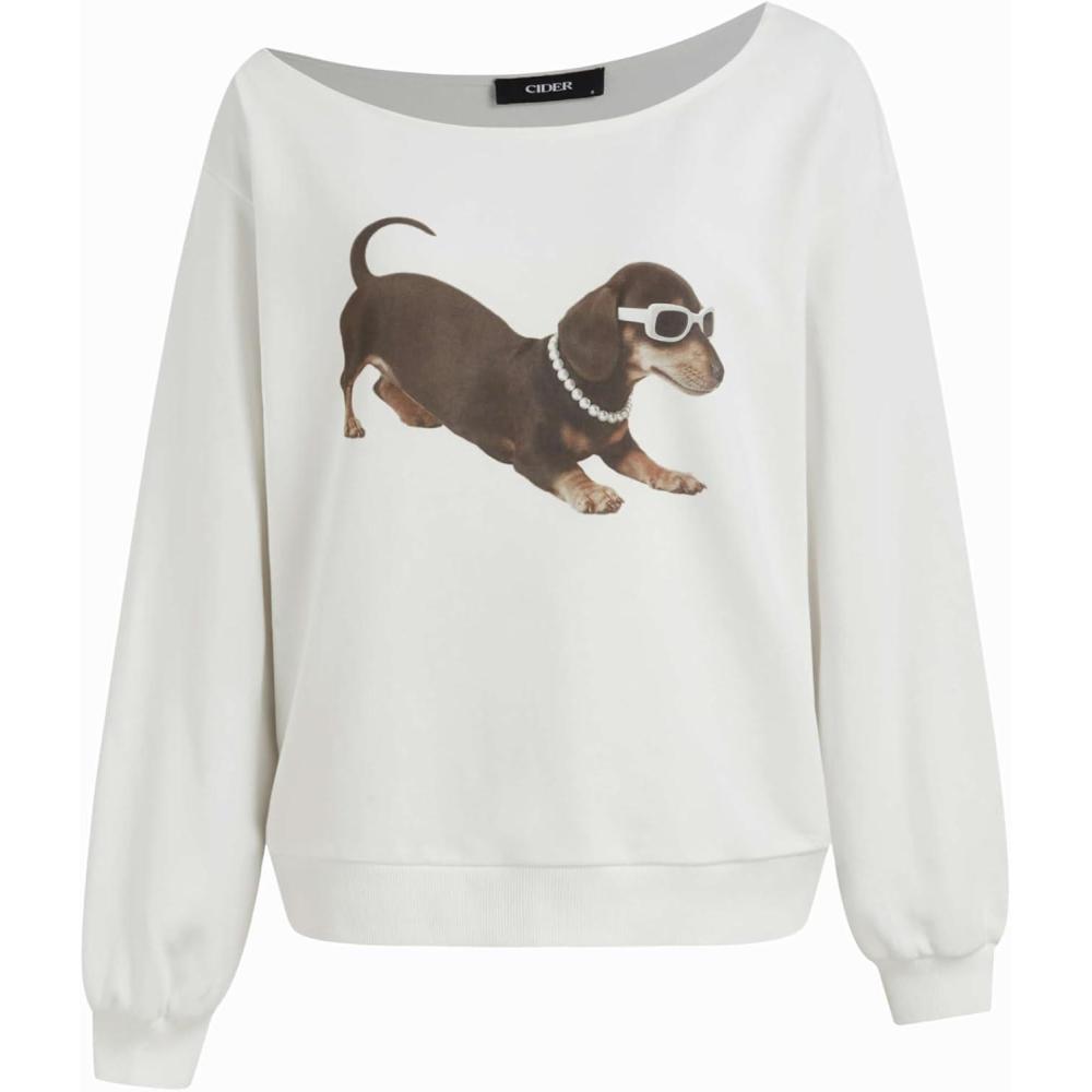 CIDER Going Out Sweatshirt for Women Dachshund Graphic Asymmetrical Neck Long Sleeve Terry Pullover Dog Top(White)