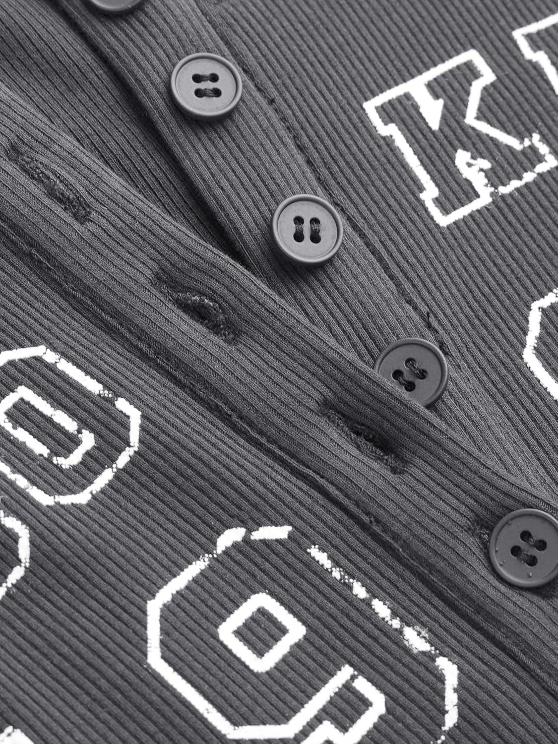 Be the first to review “CIDER Graphic Button Crop Tee(Grey)”