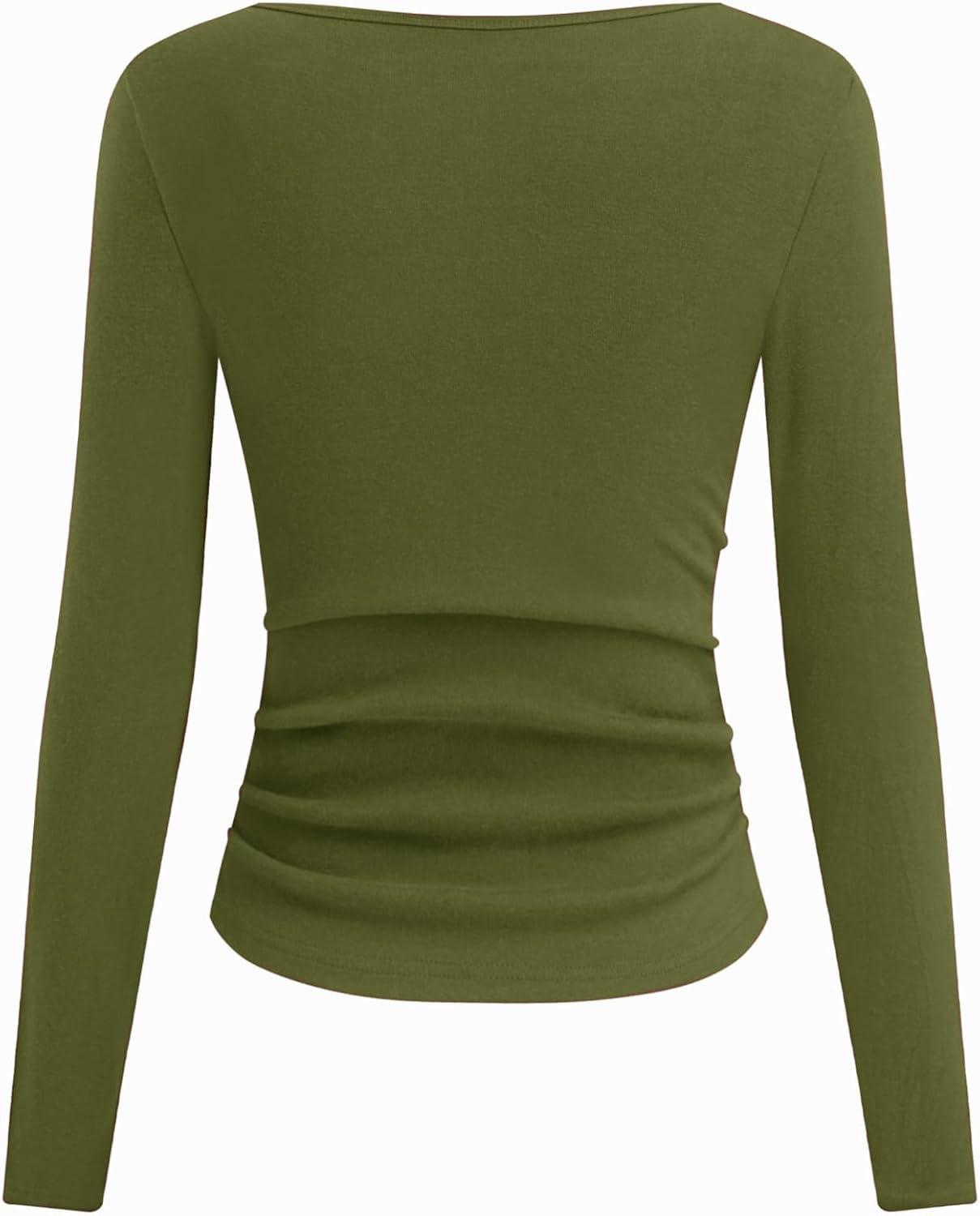 CIDER Long Sleeve Tops for Women Thermal Shirts Square Neck Ruched Basic Fall Top Slim Fitted Casual Tee Shirt(Green)