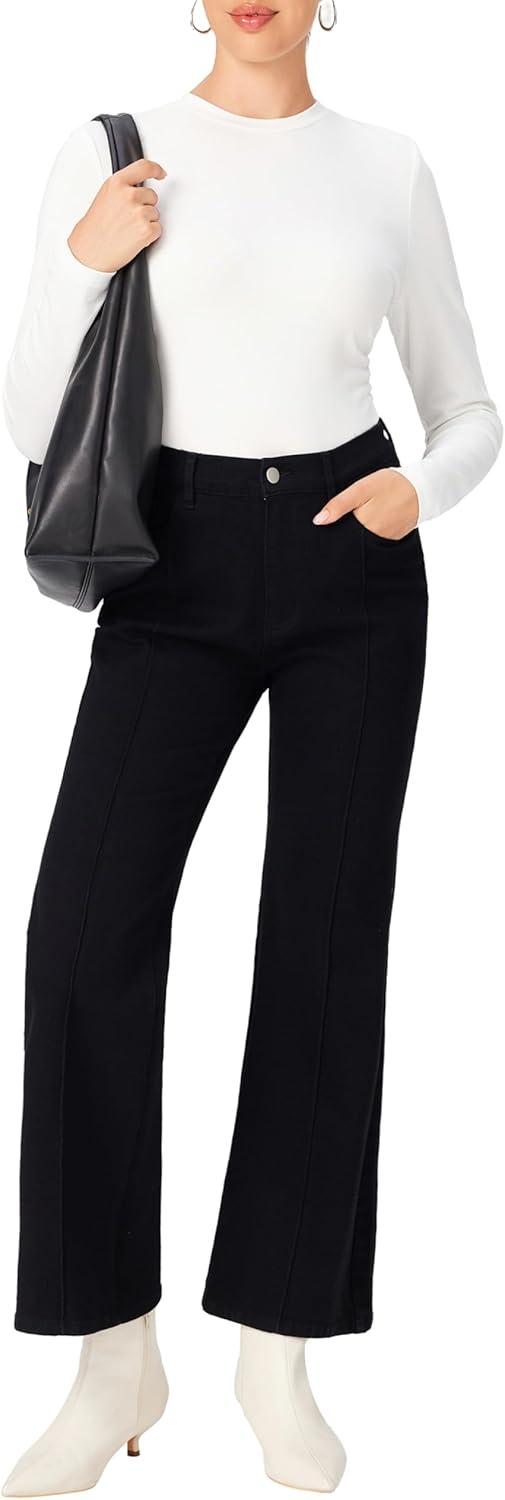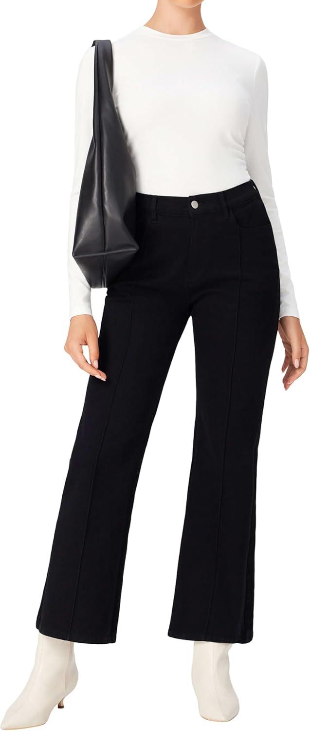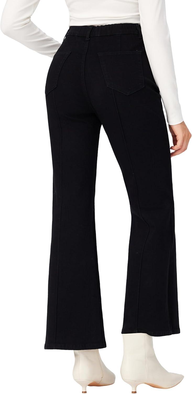 CIDER Middle Waist Flare Leg Jeans for Women Casual Slim Stretch Denim Pants Flared Trouser(Black)