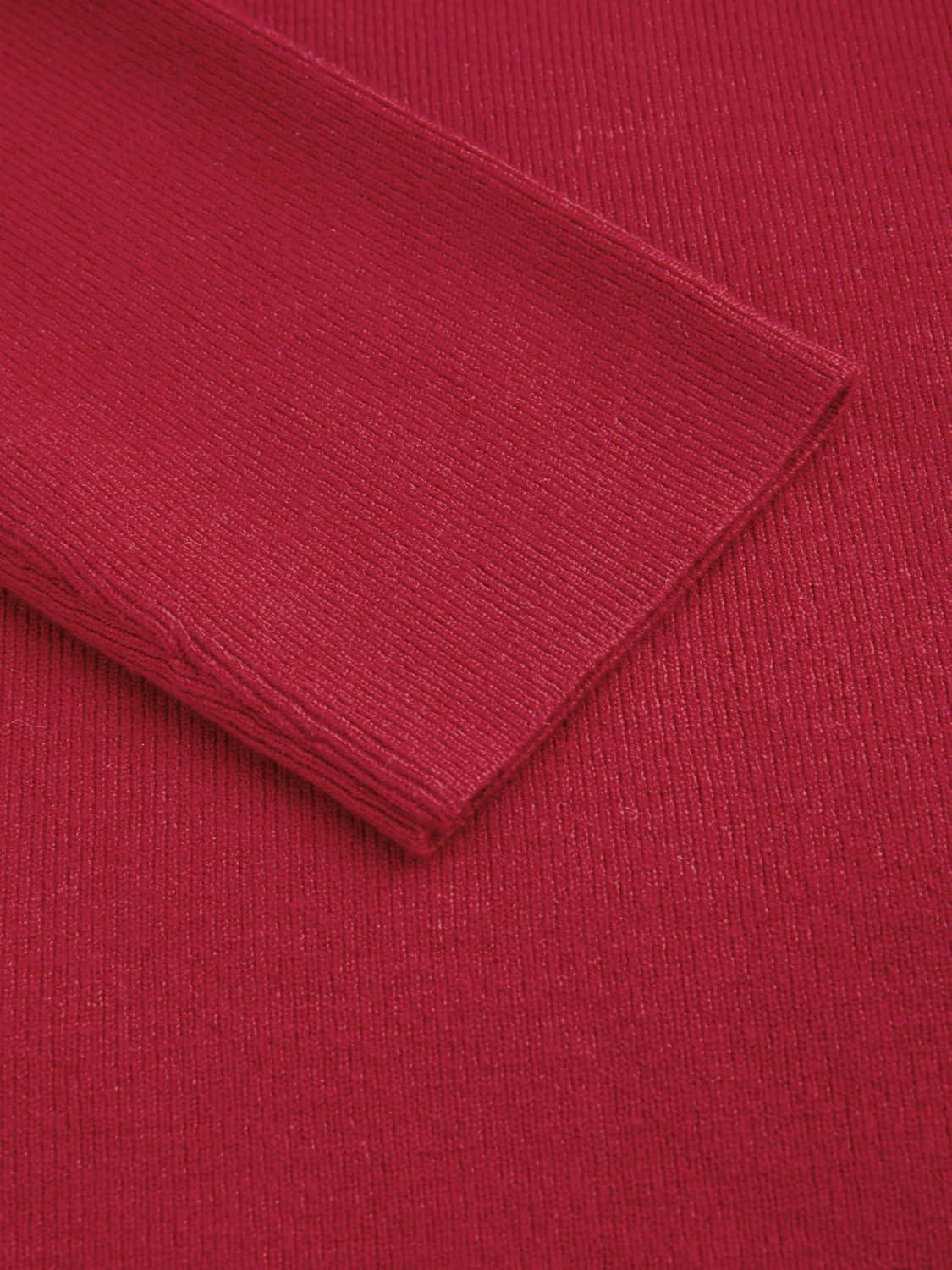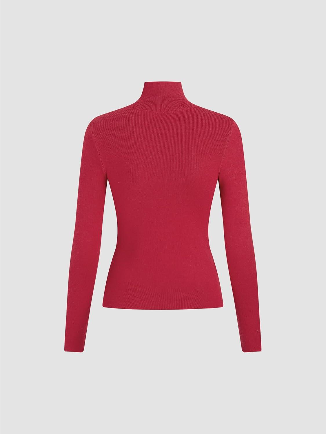 CIDER Mock Turtleneck Tops for Women Ribbed Knit Long Sleeve Slim Fitted Fall Solid Sweater T Shirts(Red)