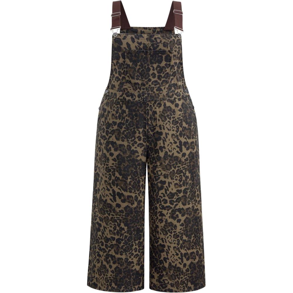 CIDER Overalls for Women Denim Leopard Pocket Buckle Up Wide Leg Jumpsuit(Leopard Tan)