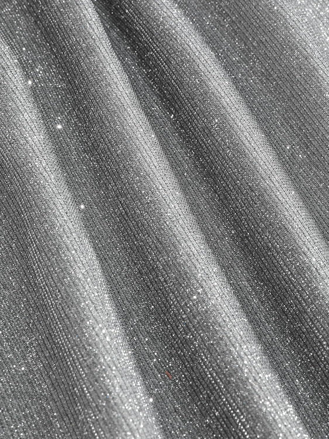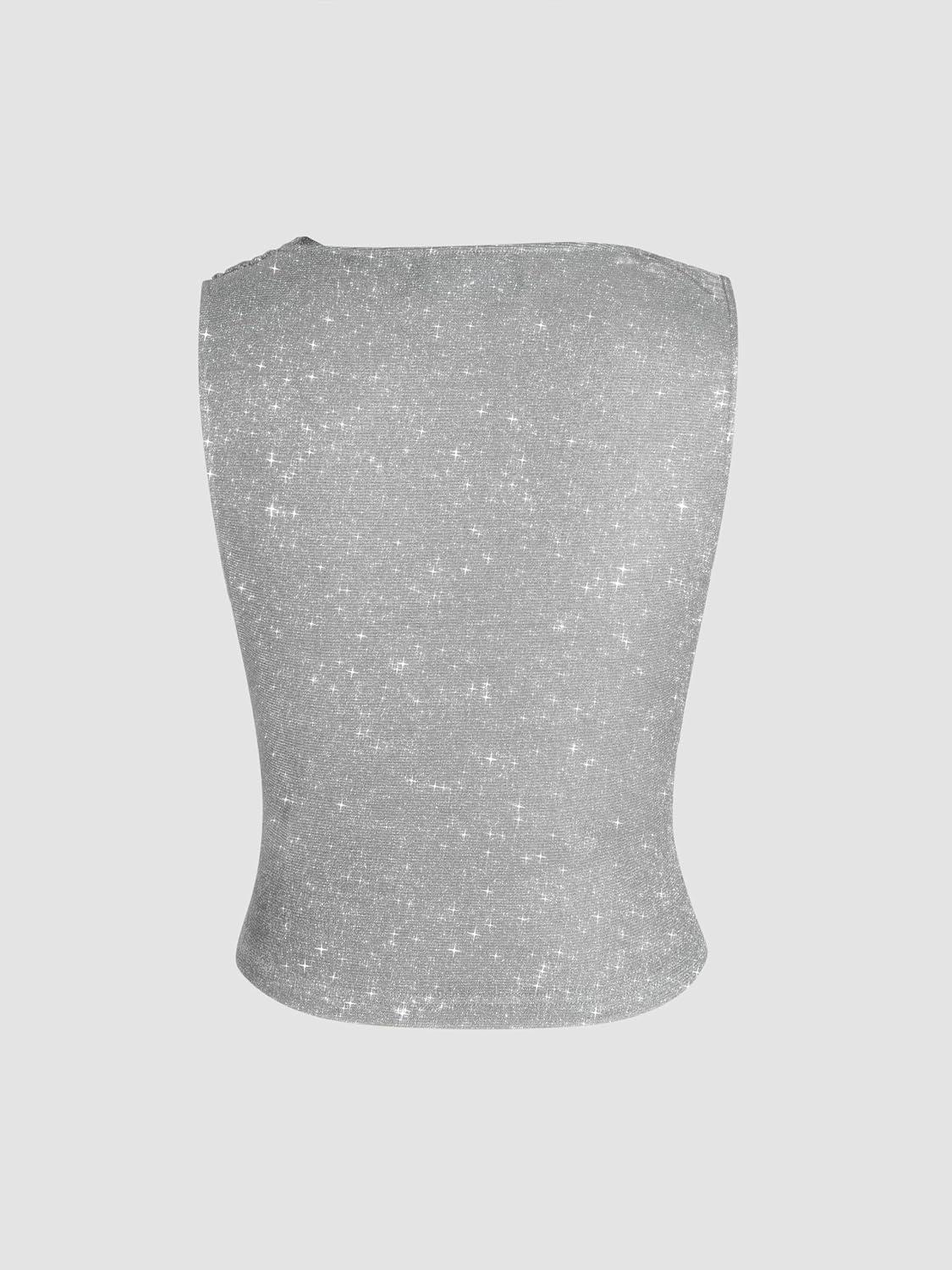 CIDER Round Neck Ruched Glitter Asymmetrical Tank Top(Silver)
