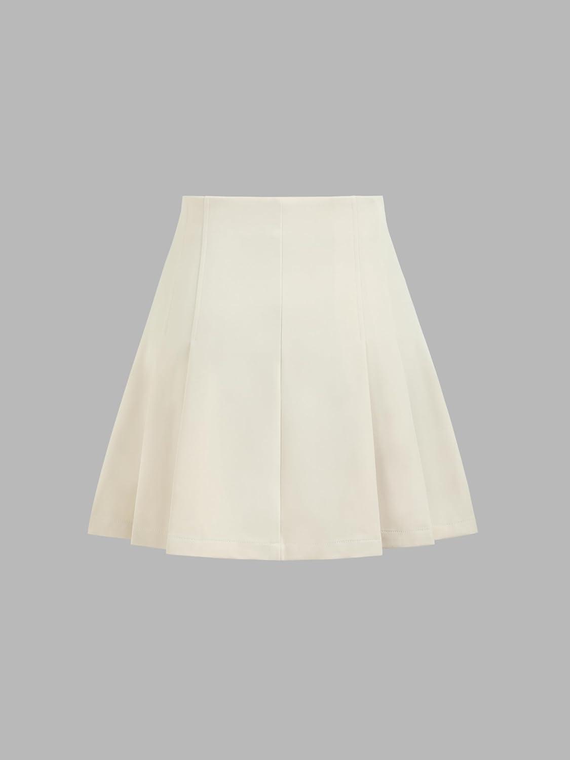 CIDER Solid Mid Waist Pleated Mini Skirt(Beige)