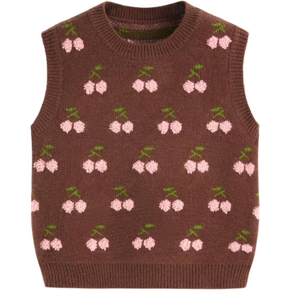 CIDER Sweater Vest Women Sleeveless Cropped Sweaters Cute Graphic Tank Tops Old Money Clothes Fall Outfits(Brown)