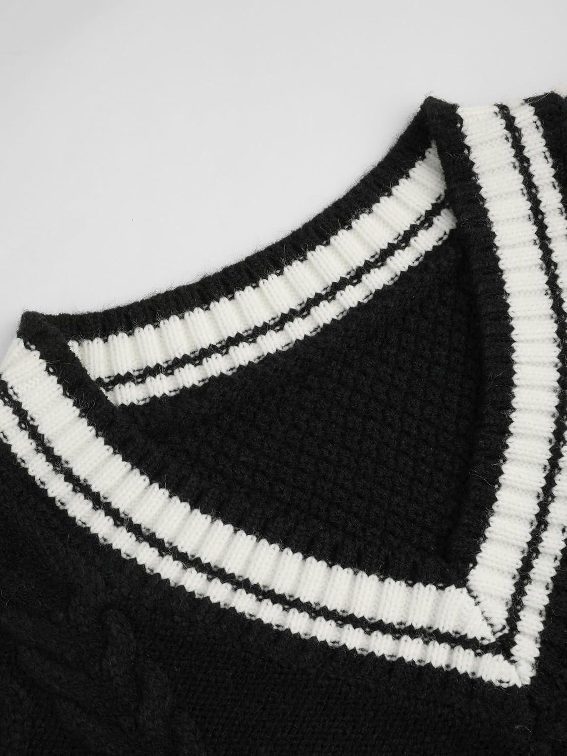 Be the first to review “CIDER V-Neck Contrast Binding Bowknot Knitted Vest Curve & Plus(Black)”