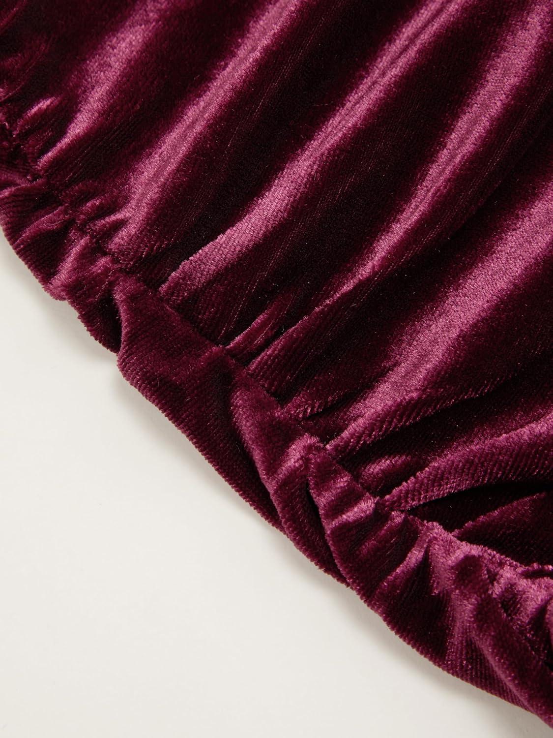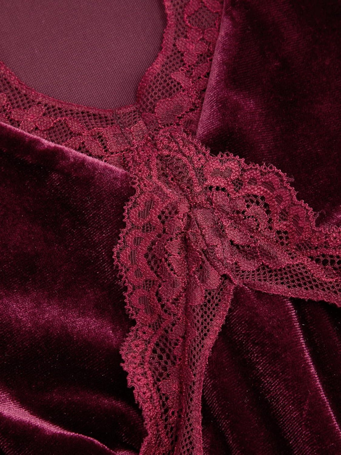 CIDER Velvet Mini Dress with Lace Trim Long Sleeve Dress(Wine)
