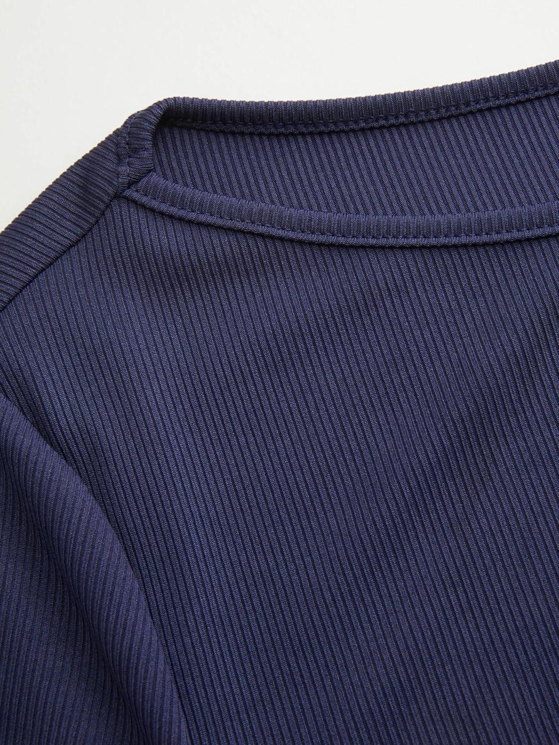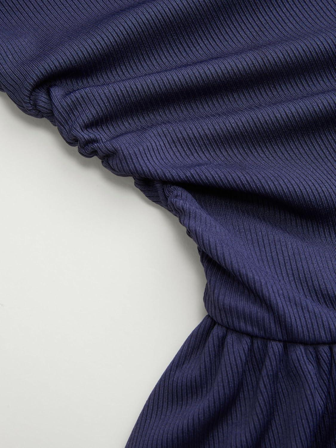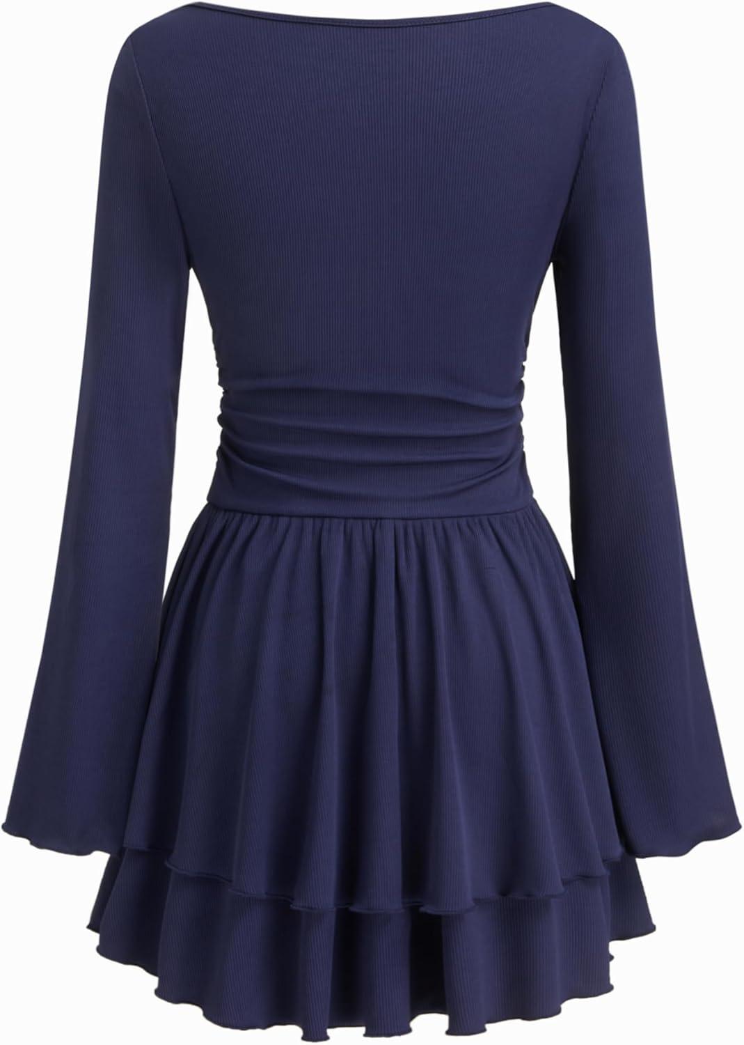 CIDER Women Boat Neck Ribbed Knit Tiered Ruffle Hem Long Sleeve Cocktail Party Mini Dress(Dark Navy)