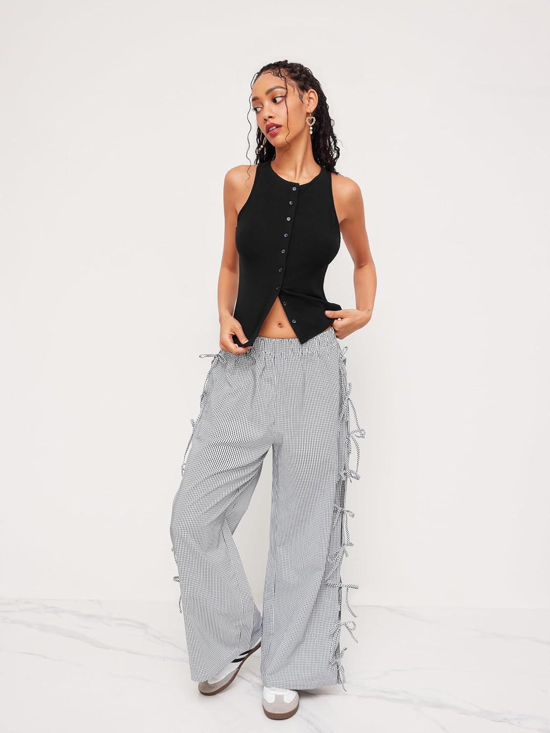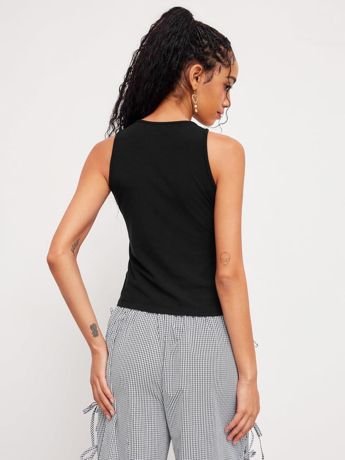 CIDER Women Button Down Tank Tops Sleeveless Ribbed Slim Fit Crop Vest Top Summer Going Out Tank Top(Black)