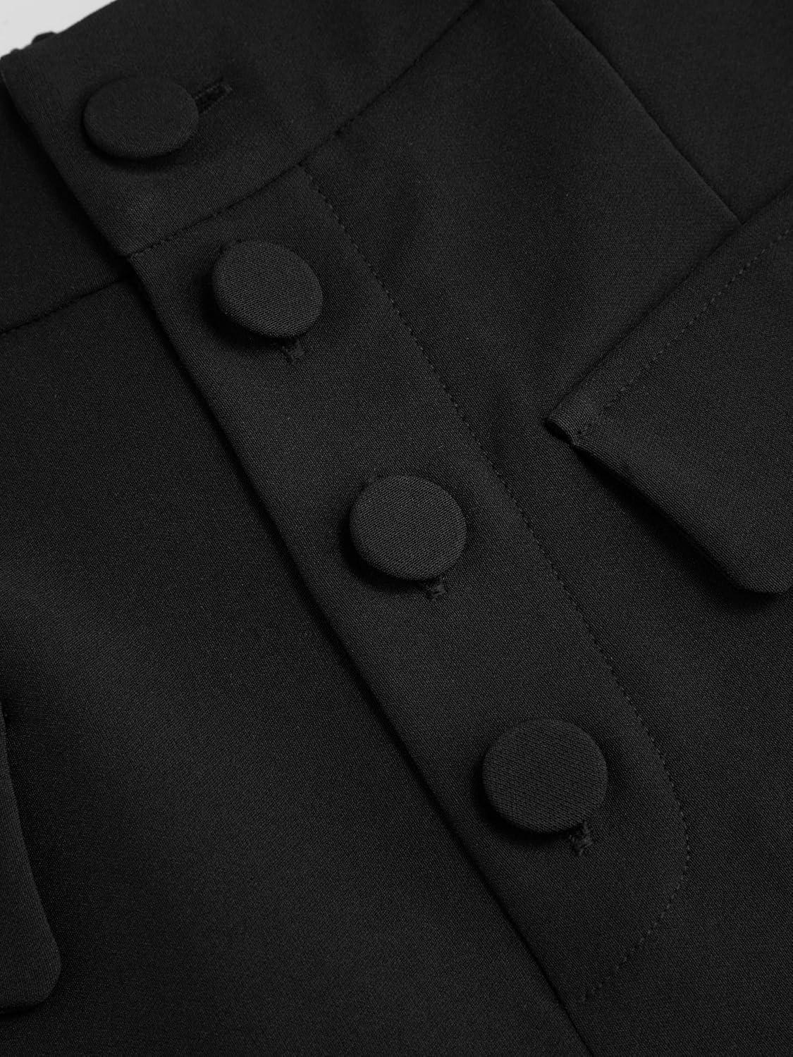 CIDER Women Middle Waist Wide Leg Pants Casual Stylish Button Front Trousers(Black)