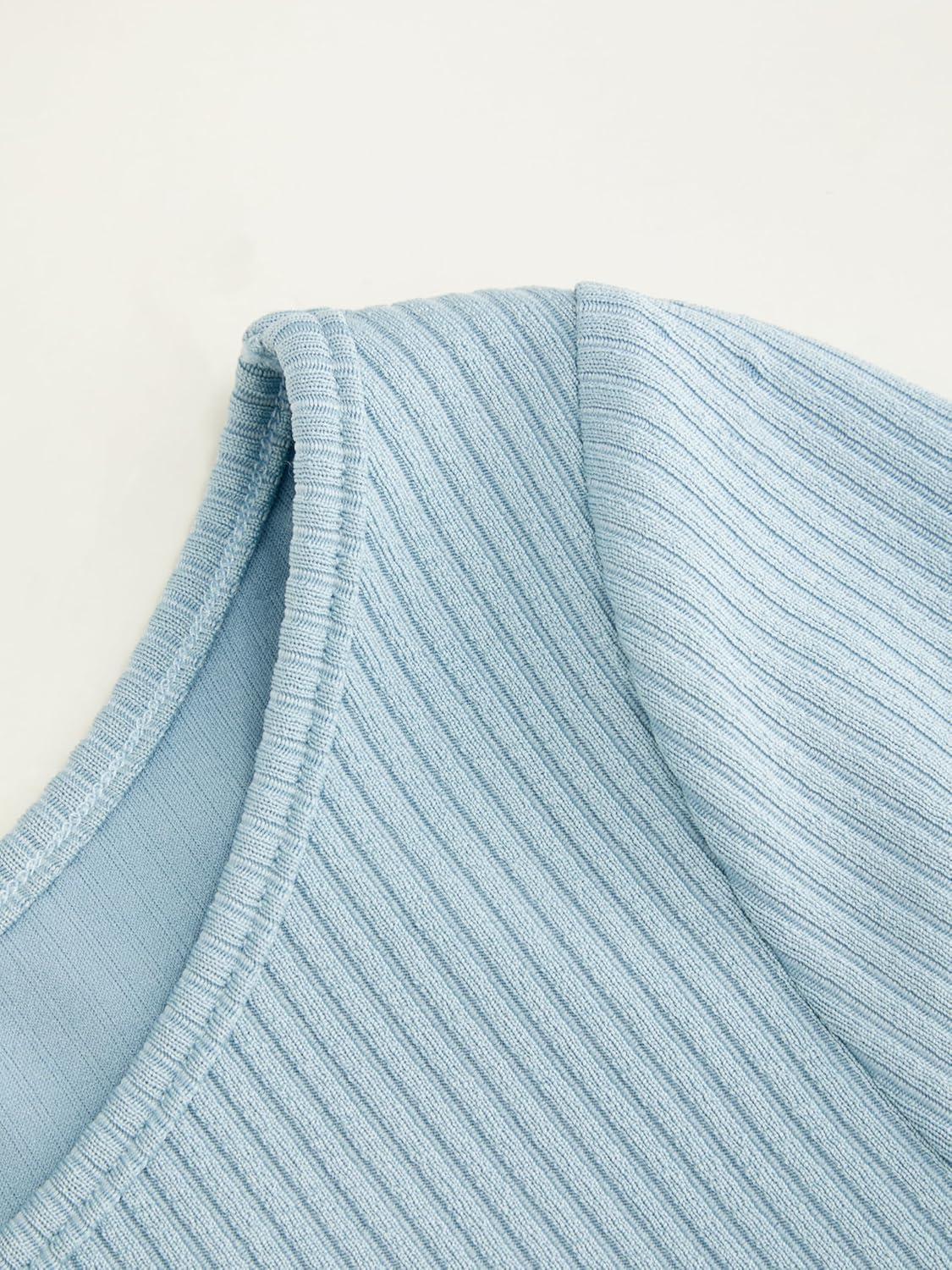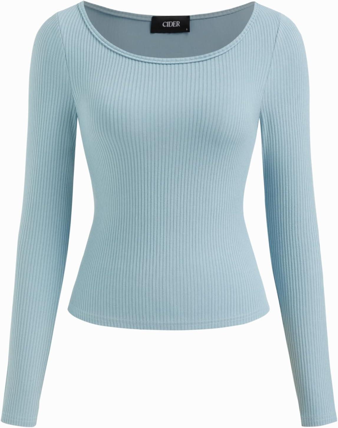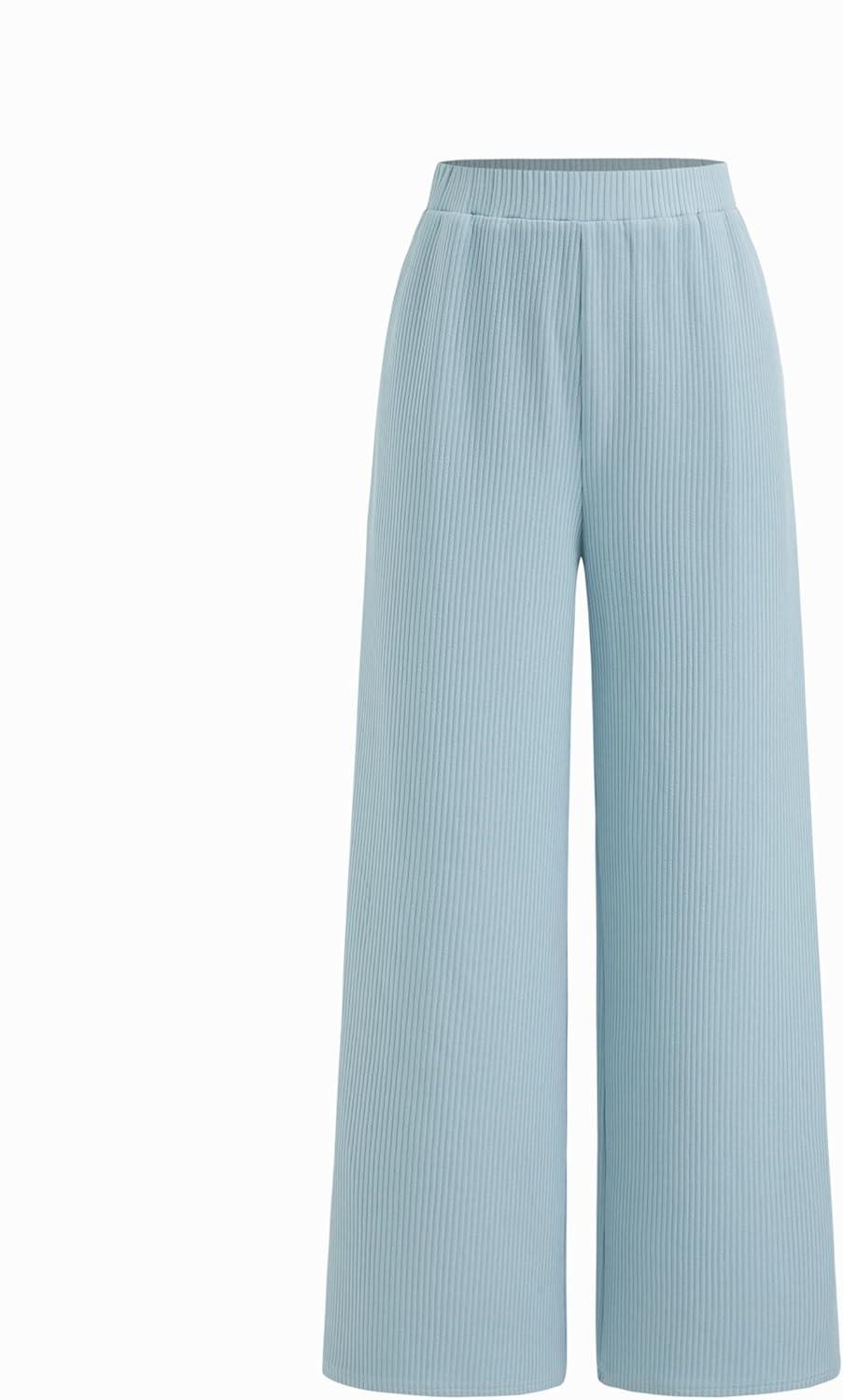 CIDER Women’s 2-Piece Sets Ribbed Knit Lounge Set Long Sleeve Top Wide Leg Pants Basic Casual Fall Fashion Outfit(Baby Blue)