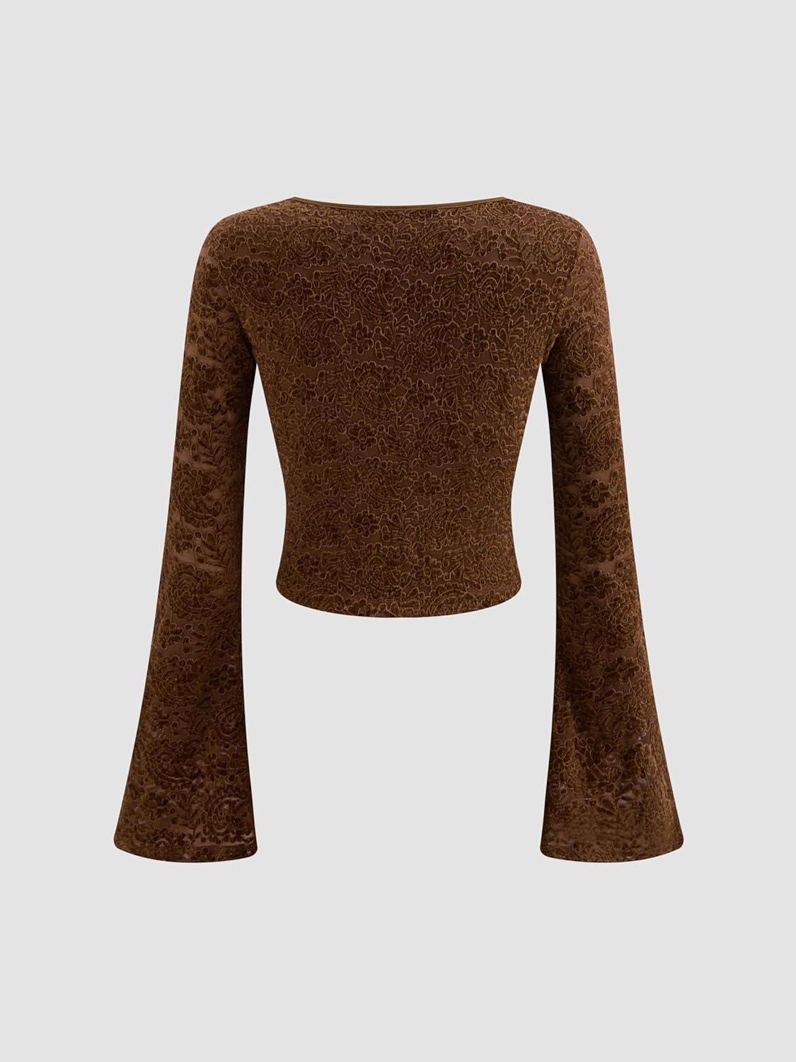 CIDER Women’s Bell Long Sleeve Shirts Square Neck Lace Casual Going Out Crop Tops