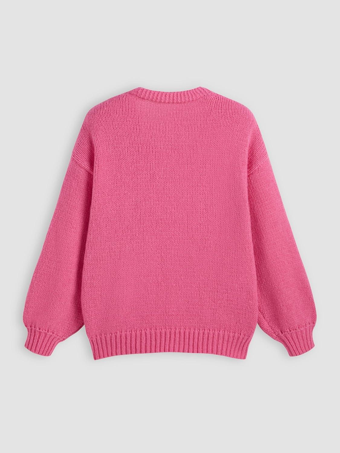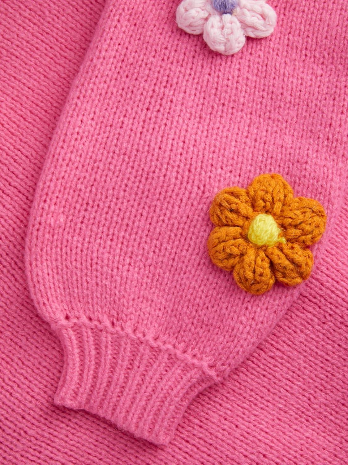 CIDER Women’s Floral Cropped Cardigan Cute Flower V Neck Button Down Trendy Sweater(Pink)