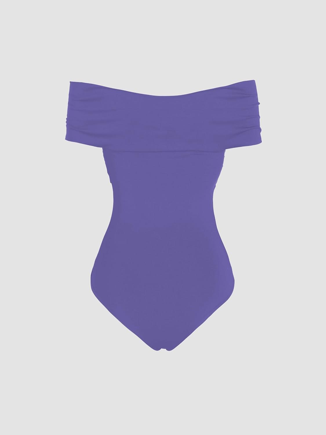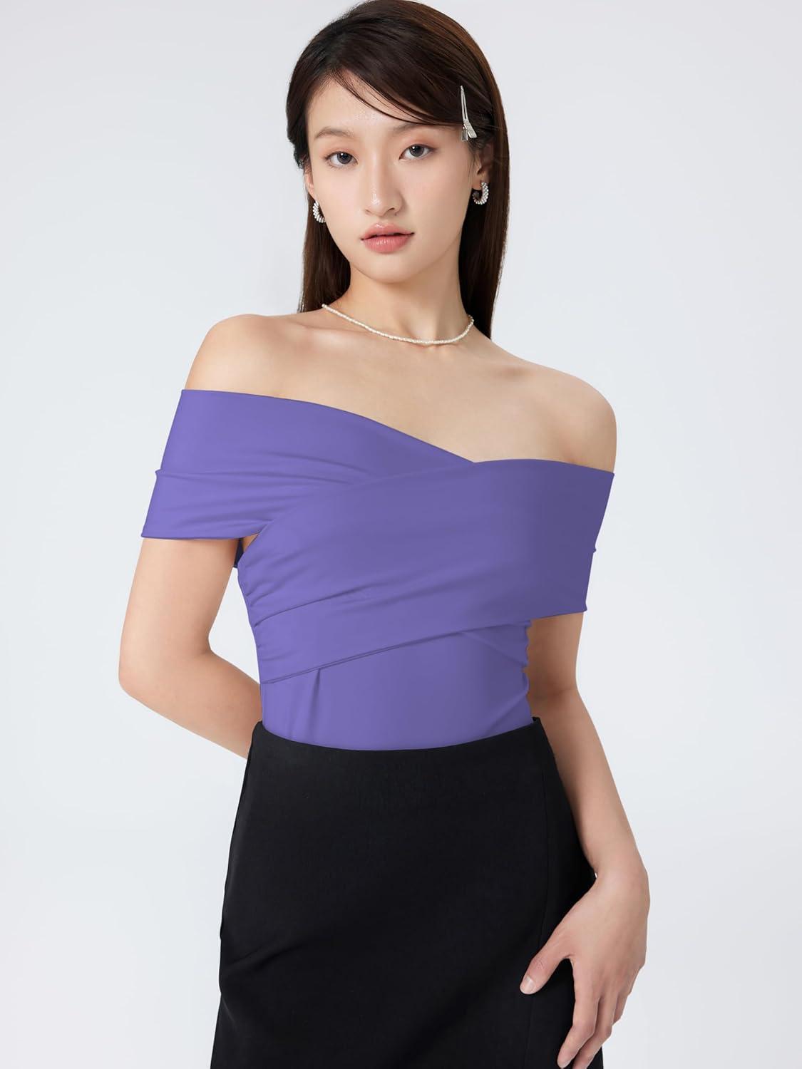 CIDER Women’s French Riviera Vacation Solid Off-shoulder Bodysuit(Purple)