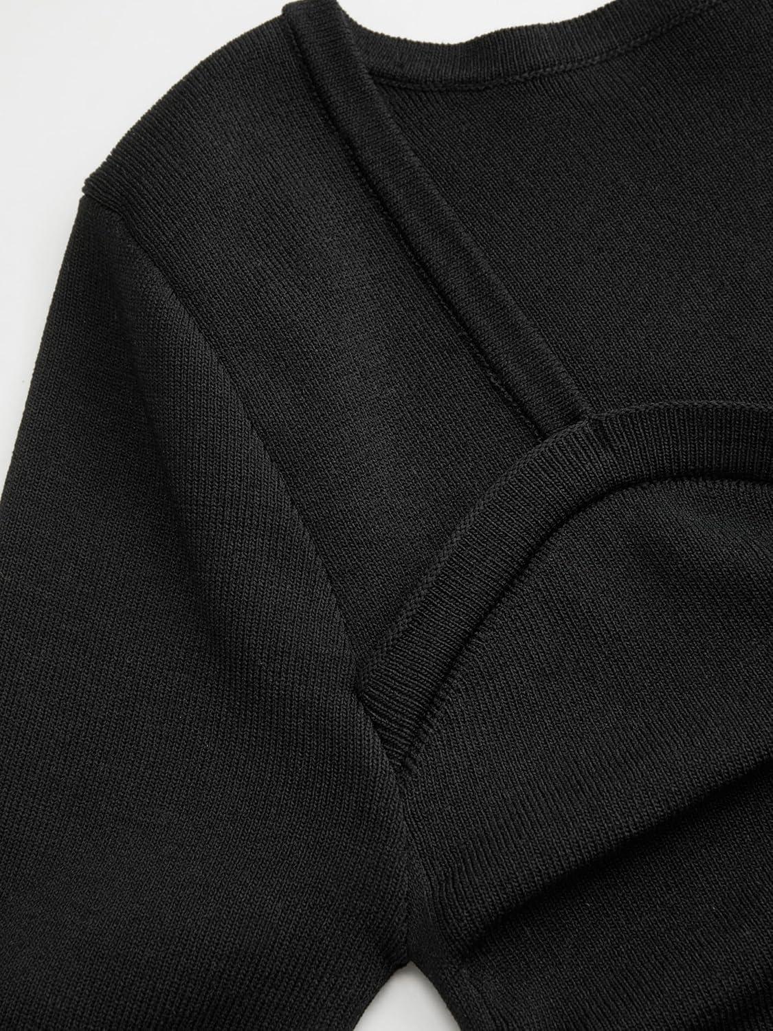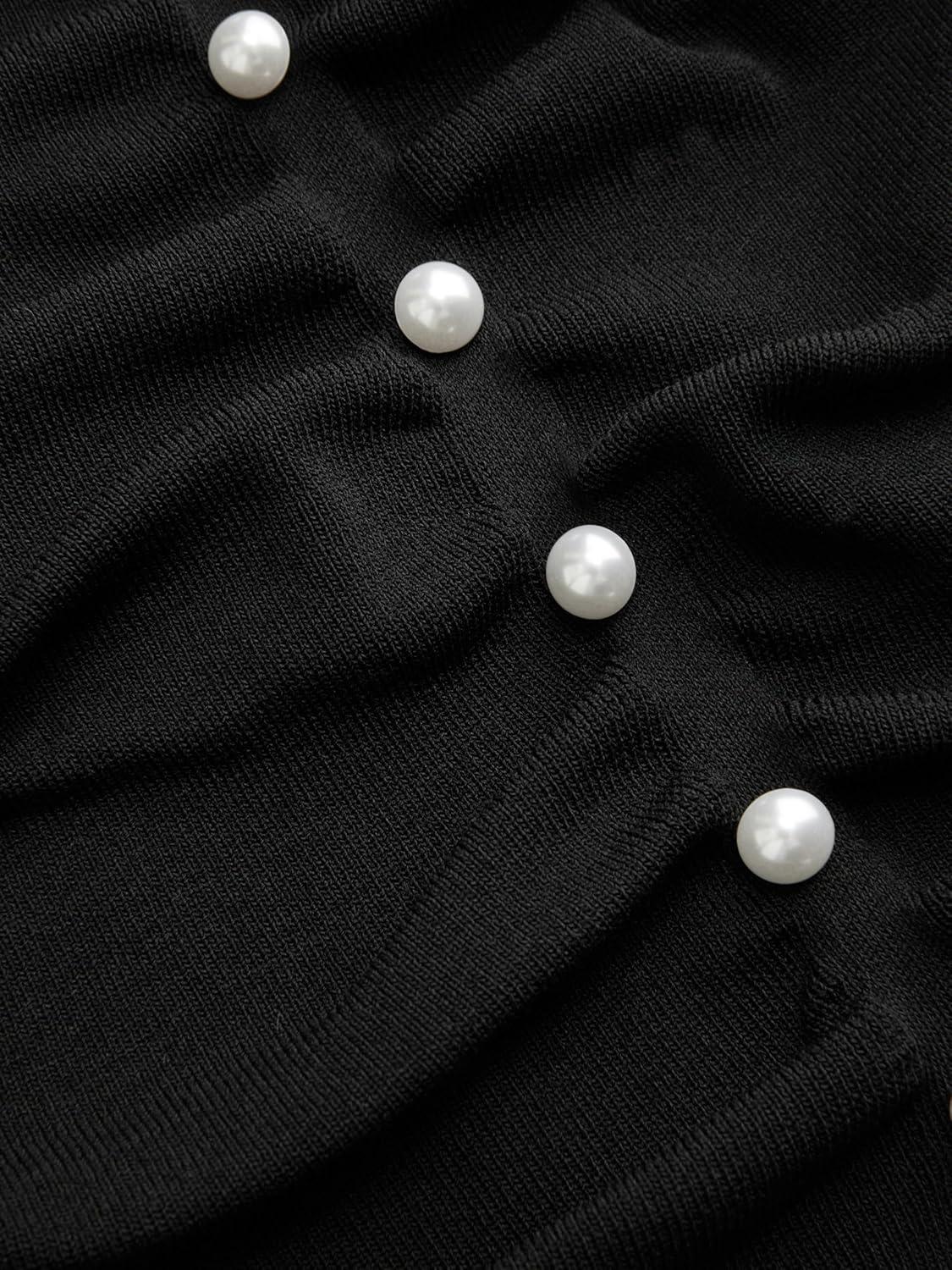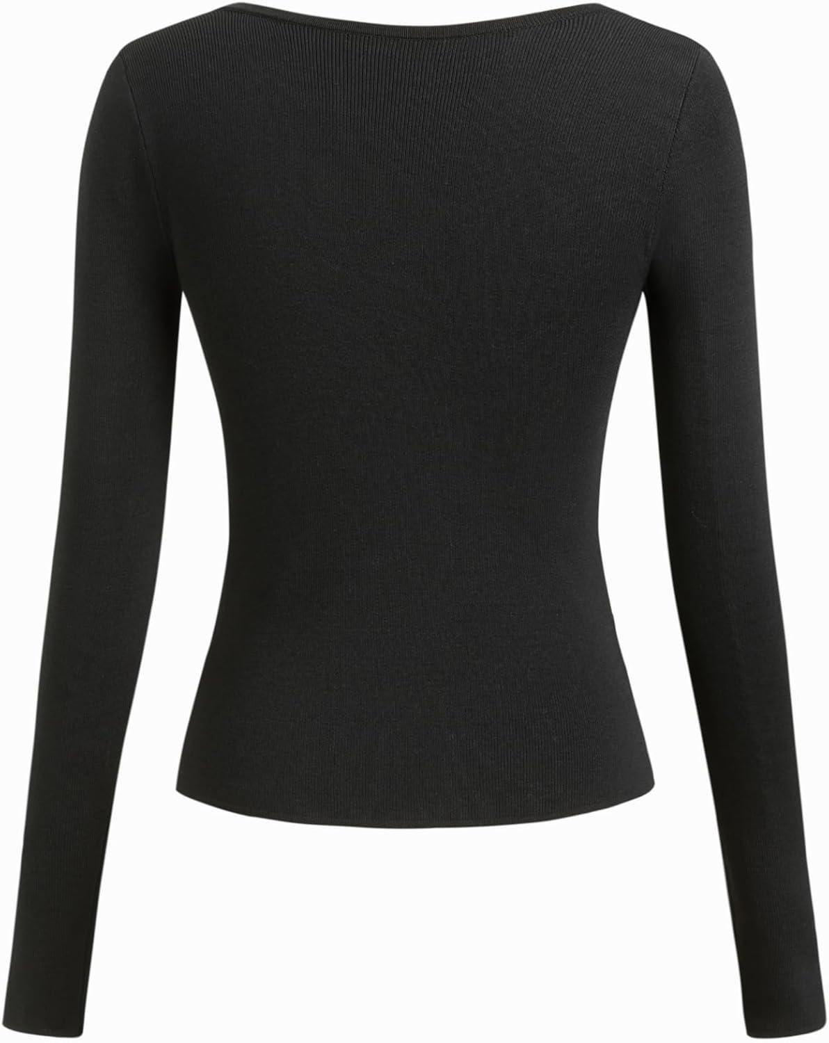 CIDER Women’s Going Out Crop Tops Faux Pearl Long Sleeve Square Neck Ruched Tops Fall Spring Trendy(Black)