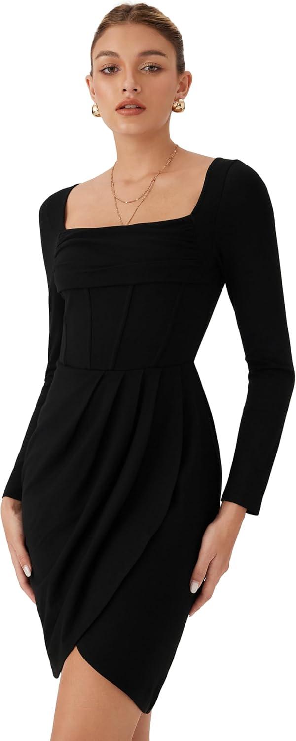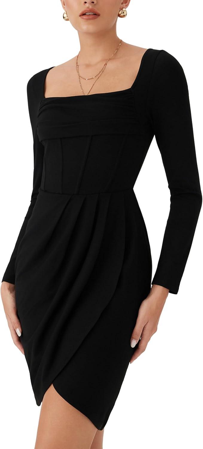 CIDER Womens Long Sleeve Cocktail Dress Party Bodycon Dress(Black)