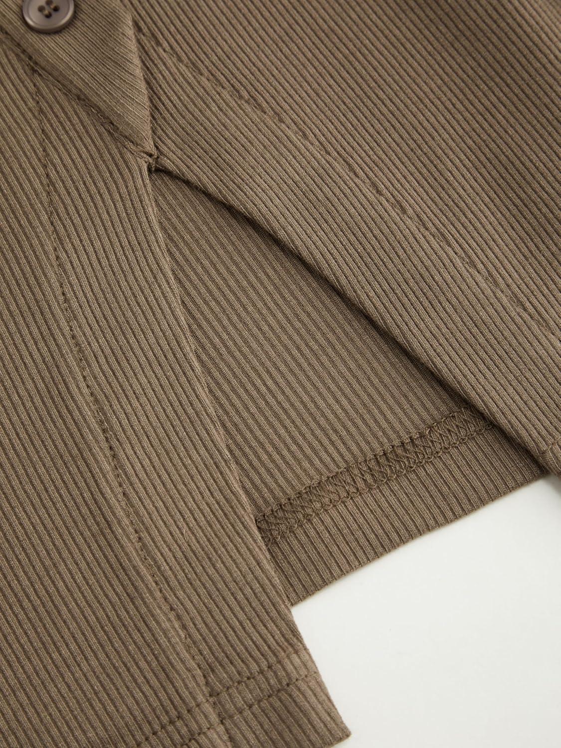 CIDER Women’s Long Sleeve Tops Button Going Out Tops Trendy Split Hem Solid Shirts Casual Fall Outfits(Brown)