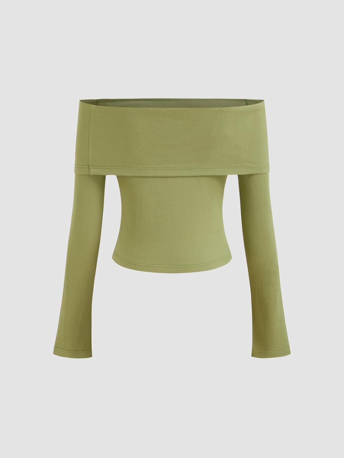 CIDER Women’s Off Shoulder Long Sleeve Cute Top Y2K Knit Pullover Tops Going Out Fall Fashion Outfits 2025 Trendy(Green)