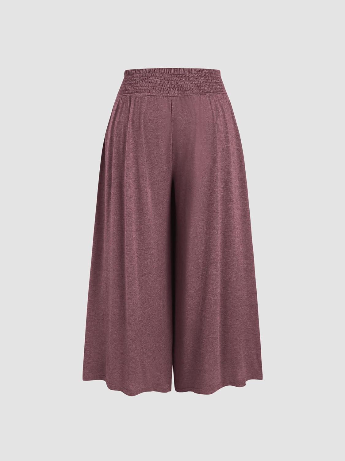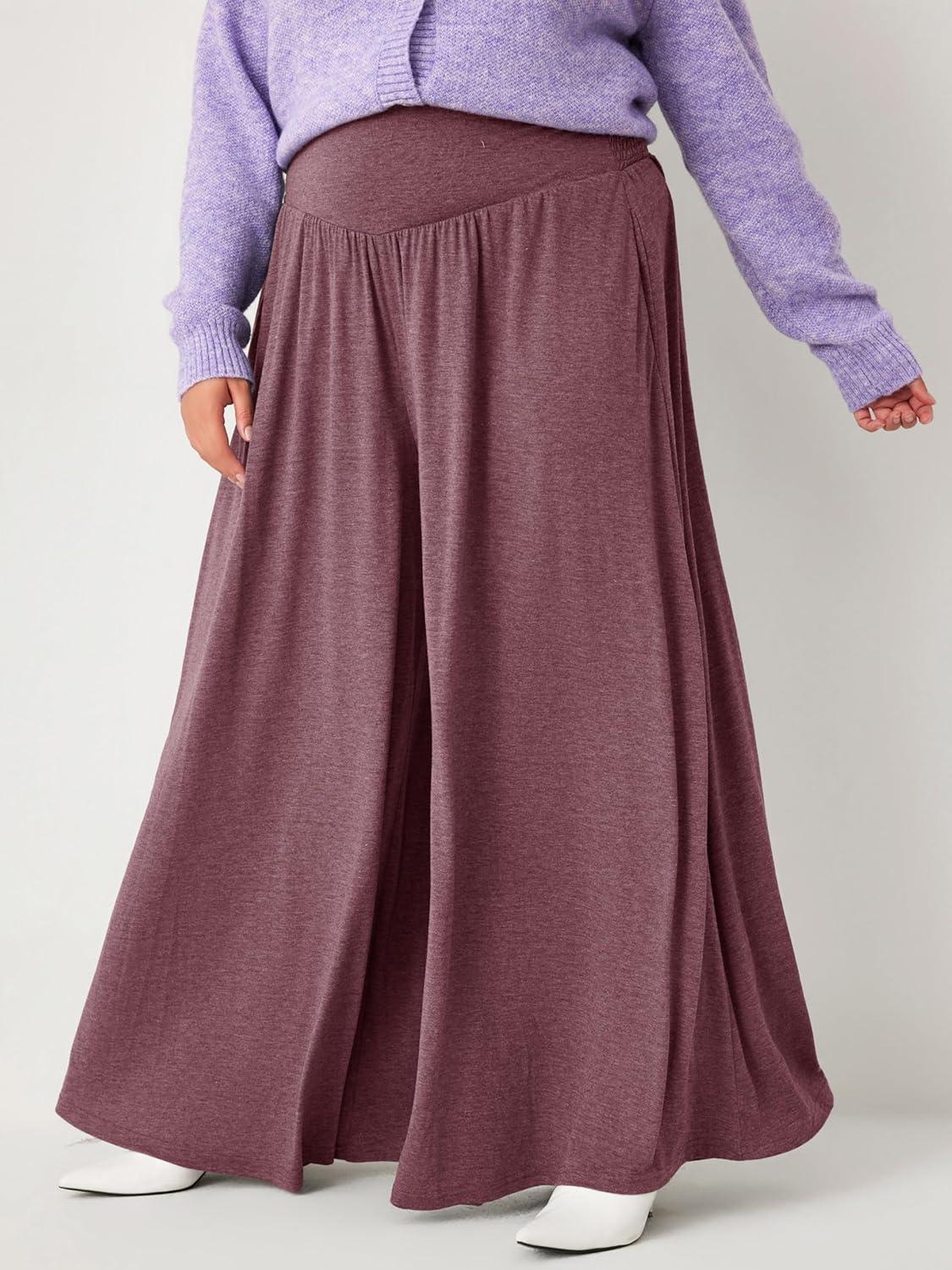 CIDER Women’s Plus Size Wide Leg Pants Palazzo Flowy Loose Fit Casual Lounge Pants with Pockets(Wine)