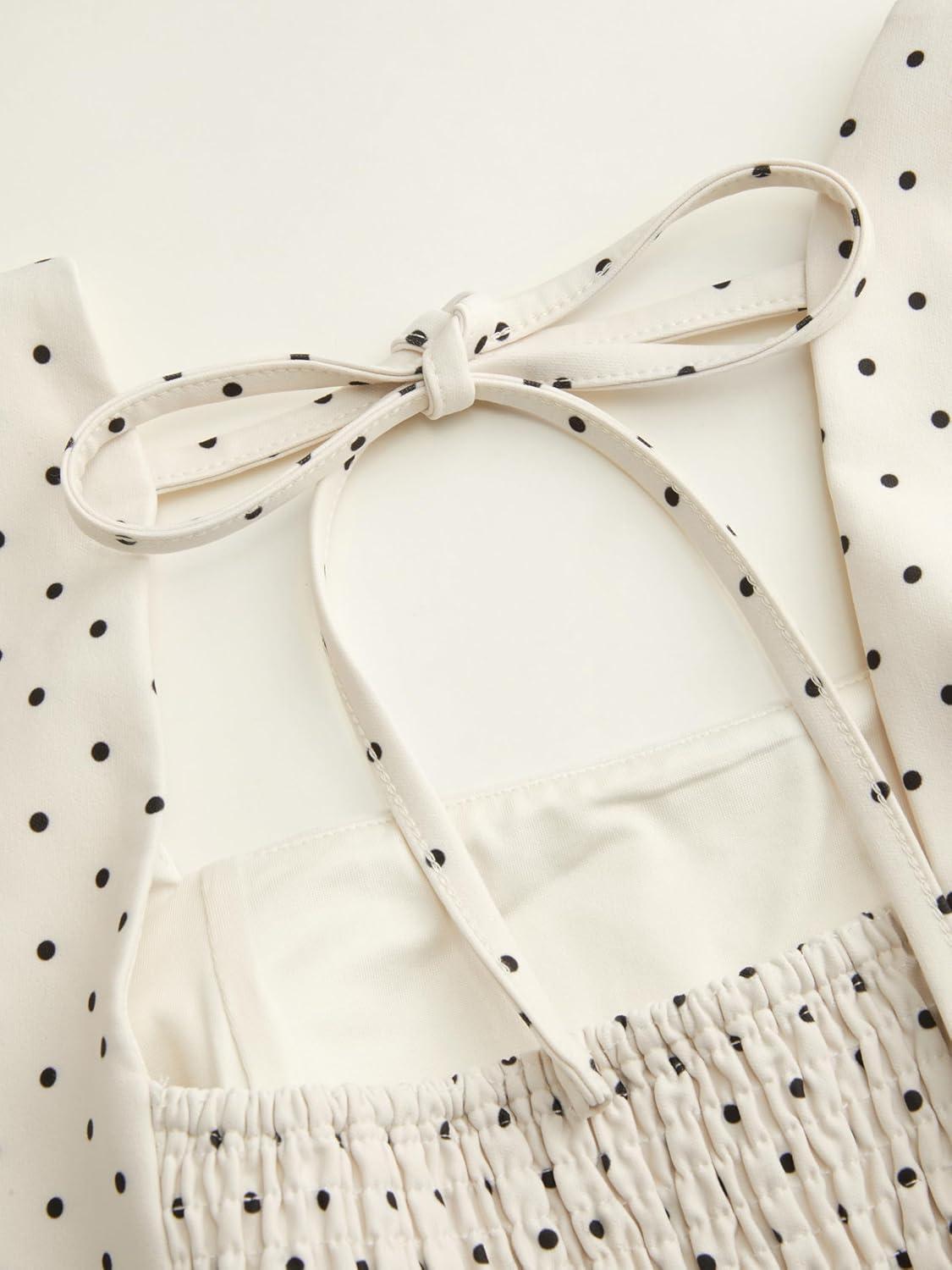 CIDER Womens Polka Dot Dress Vintage Square Neck Casual Long Sleeve A Line Mini Date Night Dress Fall 2025(White)