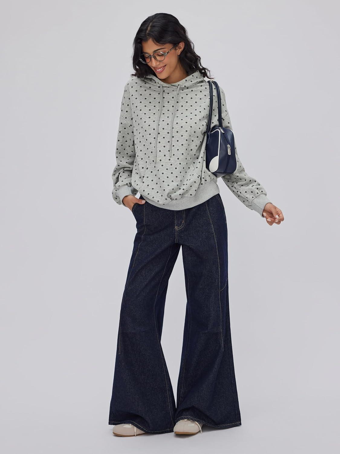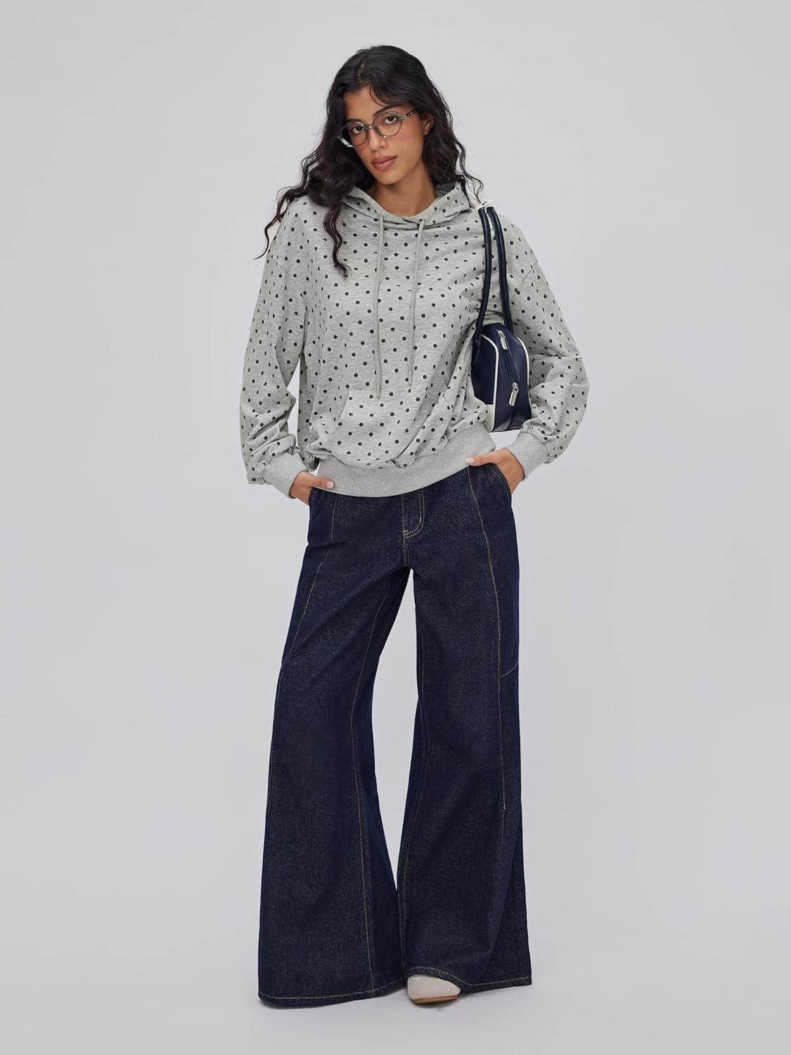 CIDER Womens Polka Dot Hoodie Pullover Sweatshirt Casual Long Sleeve Top(Grey)
