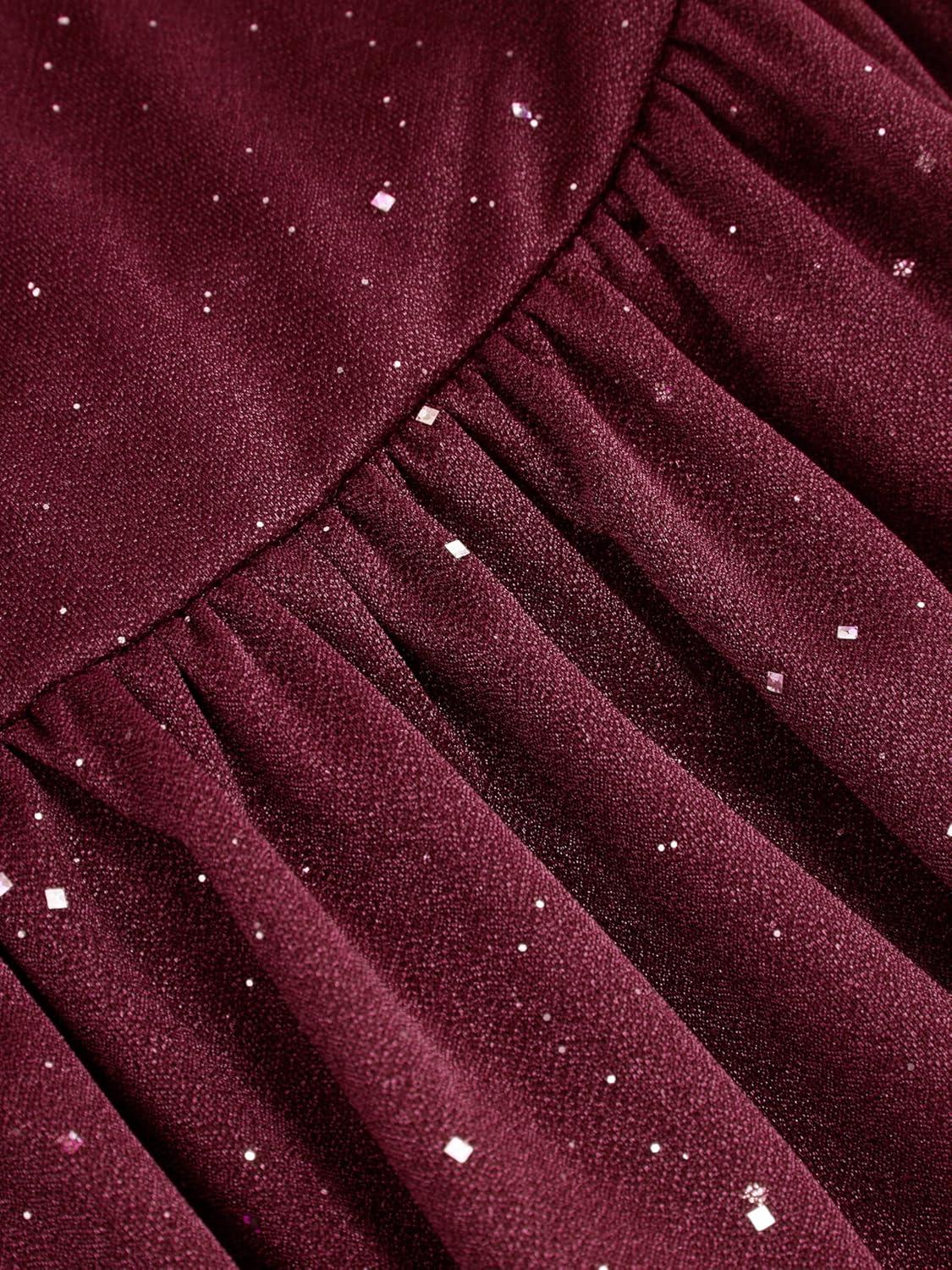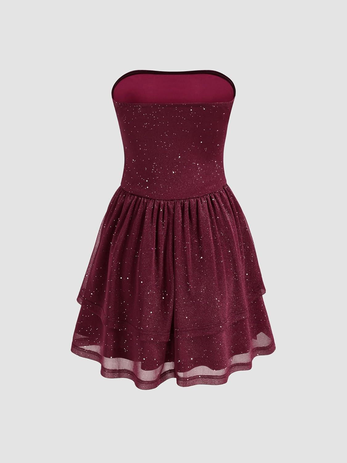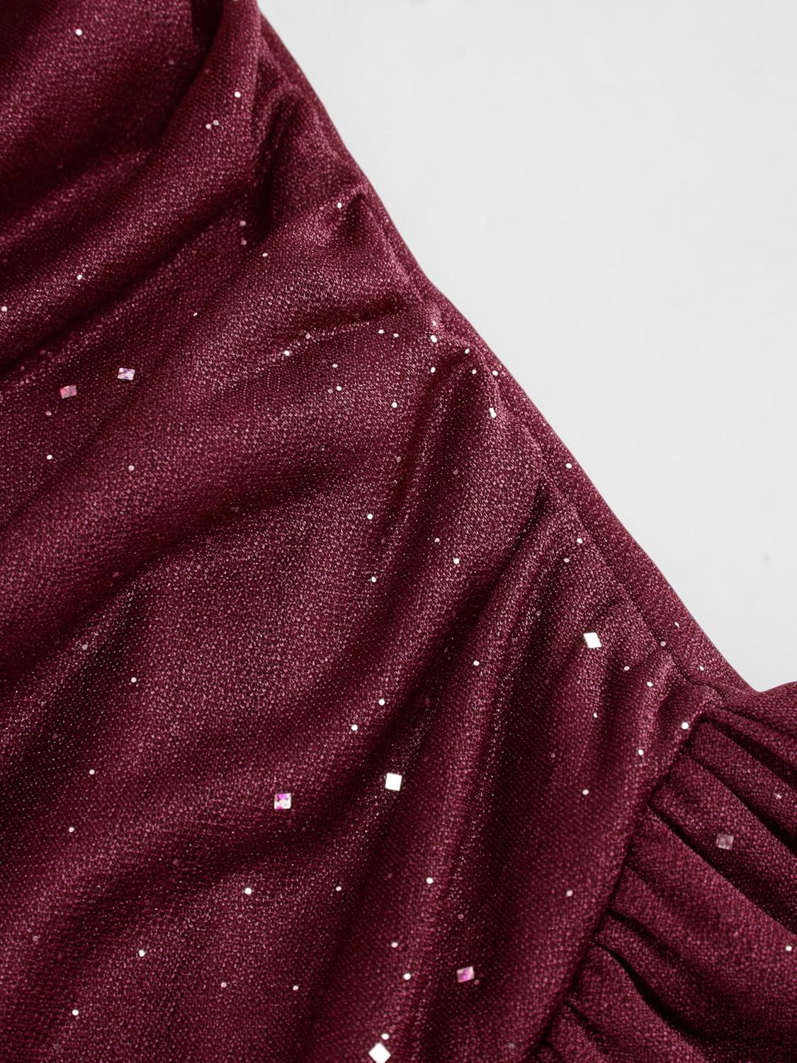 CIDER Women’s Summer Cocktail Dress – Tube Ruched Ruffle Mini Dress(Glitter Burgundy)