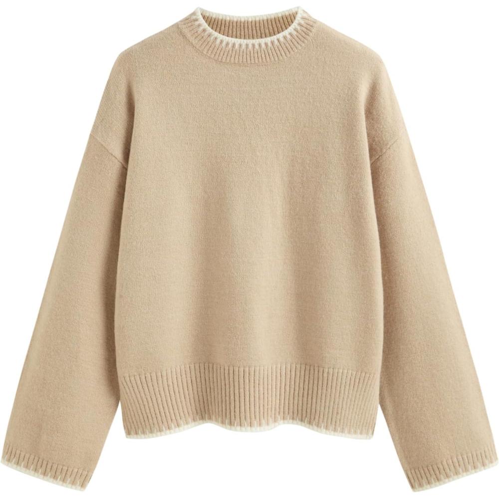 CIDER Womens Sweater Long Sleeve Split Hem Color Block Crew Neck Tops Fall Outfits(Khaki)