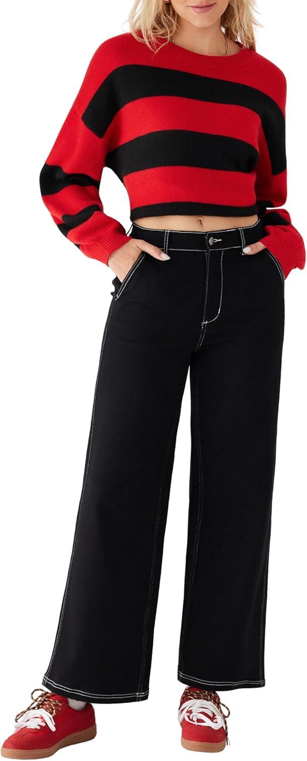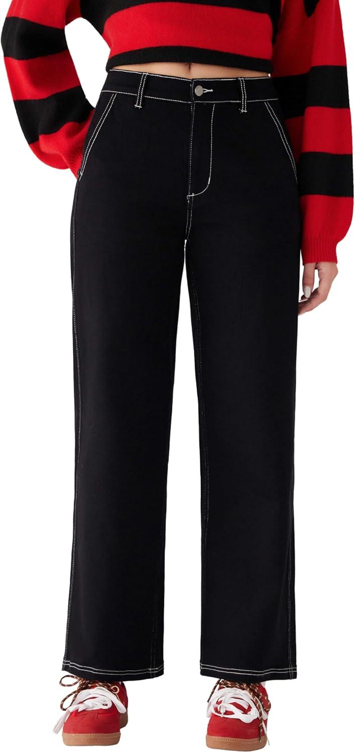 CIDER Womens Wide Leg Jeans Middle Waisted Denim Pants Y2k Fashion(Black)