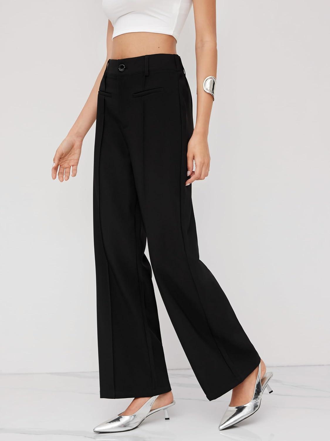 CIDER Work Pants Women Dress Pants Mid Waist Straight Leg Trousers Business Casual Slacks Office Pants(Black)