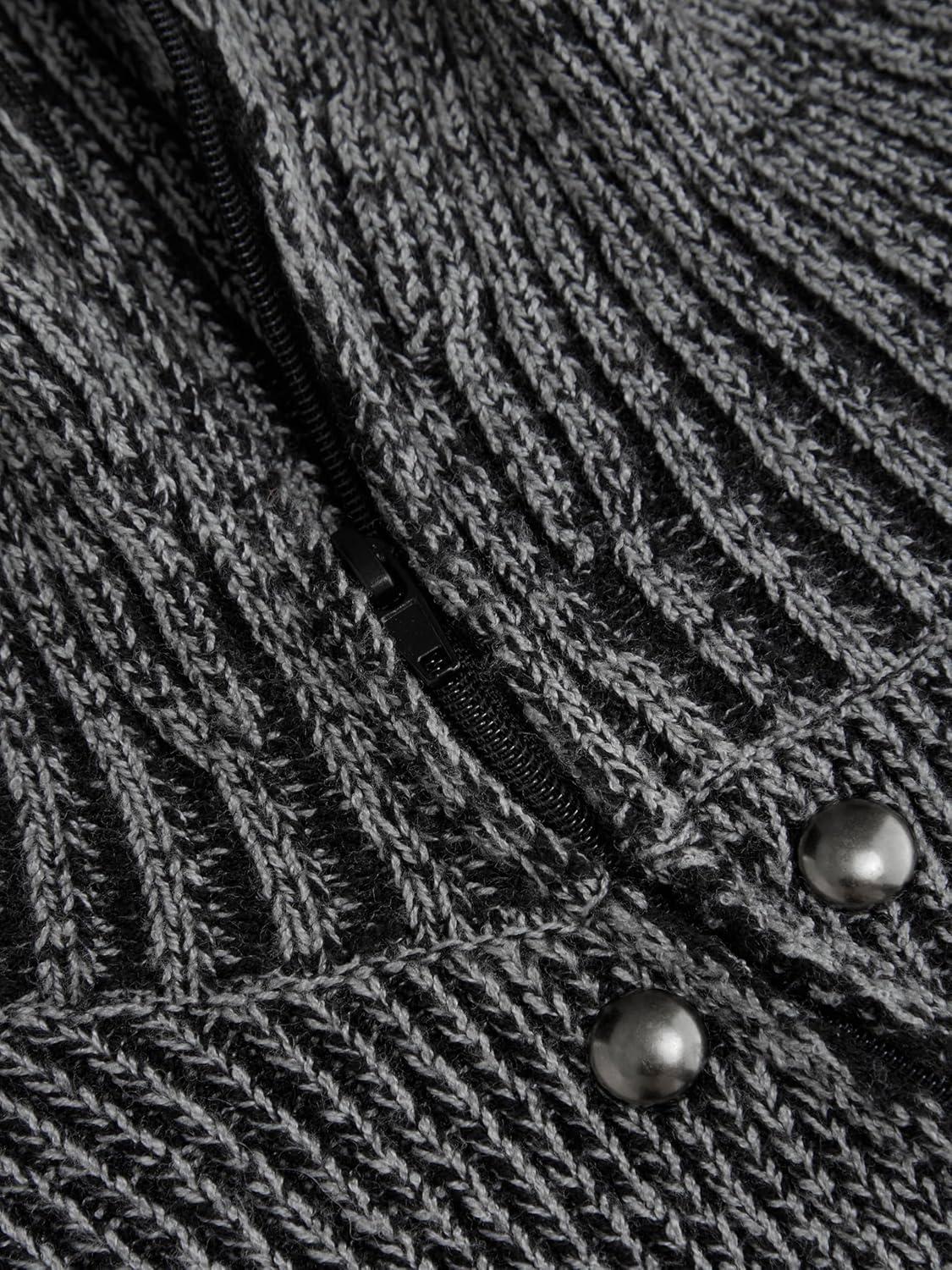 CIDER Zipper Cardigan Sweaters for Women Trendy Stand Collar Rivet Cardigans Split Long Sleeve Fall Winter(Grey)